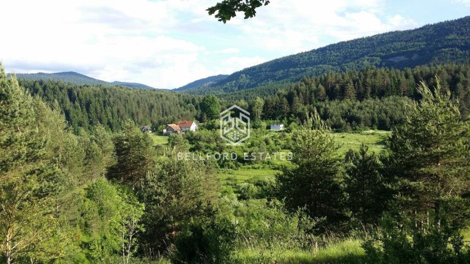 Građevinsko zemljište 1.093m2 s prekrasnim pogledom na Malu Kapelu i dolinu rijeke Ličke Jesenice (udaljenost 100 m).