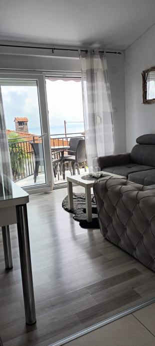 Lovran,Liganj stan za najam,odlična nekretnina.Moderno namješten i opremljen,jednosobni s dnevnim boravkom i kuhinjom,hodnik,kupaonica i veliki balkon s panoramskom pogledom na more.Parking osiguran ispred samog apartmana.
