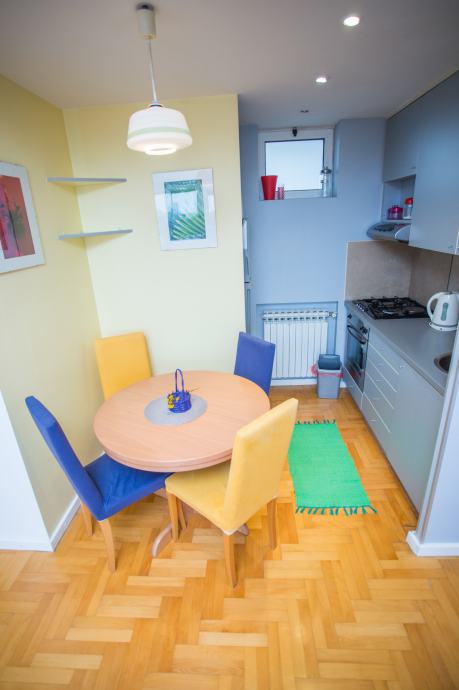 Lijep, svjetao stan od 46 m2 u Miramarskoj. Stan se nalazi na 7. katu čiste i održavane zgrade s liftom, što osigurava mir, više prirodnog svijetla i ugodniji boravak. Stan se sastoji od dnevnog boravka s kuhinjom i blagavaonom, spavaće sobe, malog balkona, kupaone s kadom i dva hodnika s prosorom za odlaganjem. Stan je kompletno namiješten i funkcionalan za svakodnevni život. Prostor je ugodan, uredan i ima puno prirodnog svijetla. U stanu je također klima uređaj. Izuzetna lokacija zbog blizine svih sadržaja: tramvaj, trgovine, kafići, fakulteti i centar grada na par minuta hoda. Zrinjevac udaljen cca. 4 minute hoda. Javni parking 2. zona ispred zgrade. Kompletno je opremljen modernim namještajem. Režije nisu uključene u cijenu najma. Neke fotografije su starije, novi kauč je vidljiv na slici. Molim zvati na 098 463112, 091 3668586