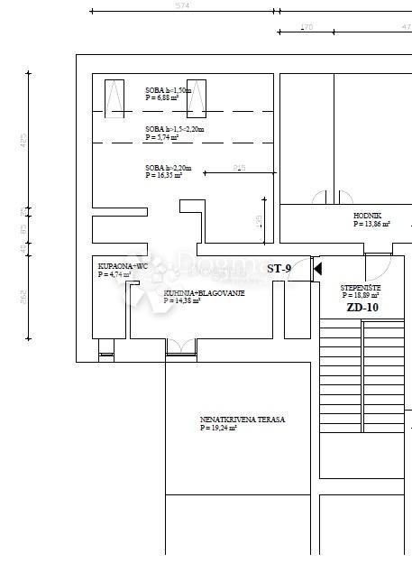 Velika nenatkrivena terasa: 19,24 m² (obračunski 4,81 m²)