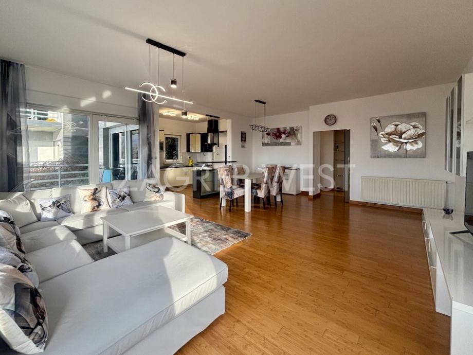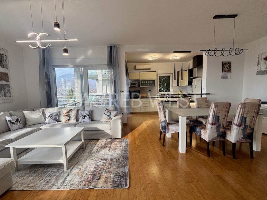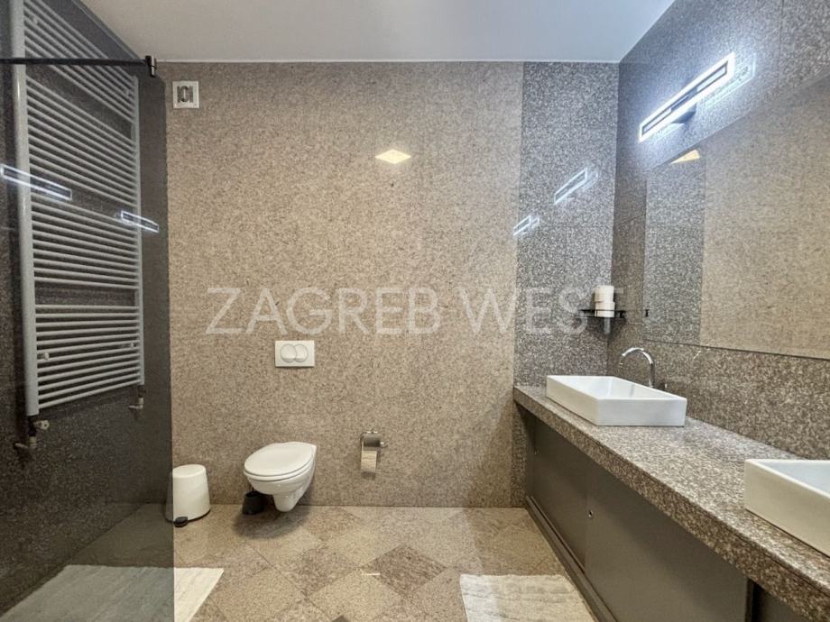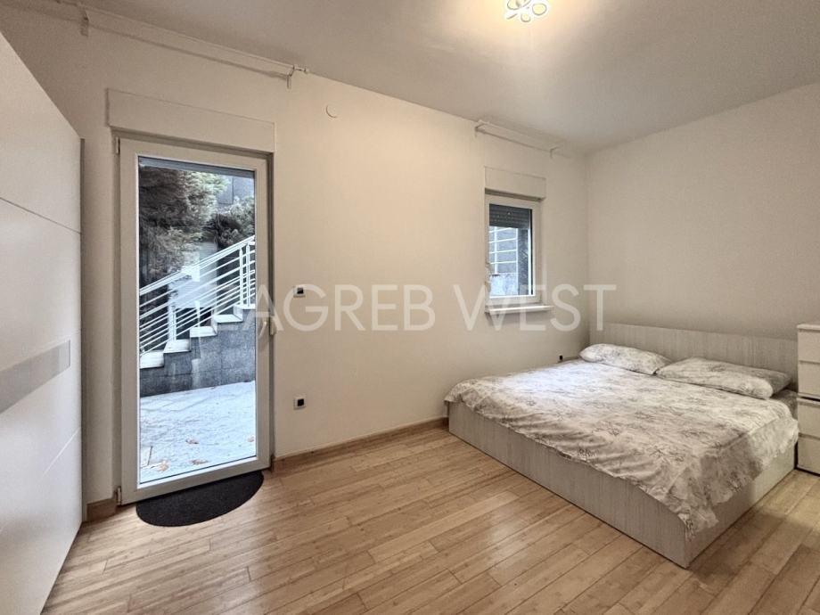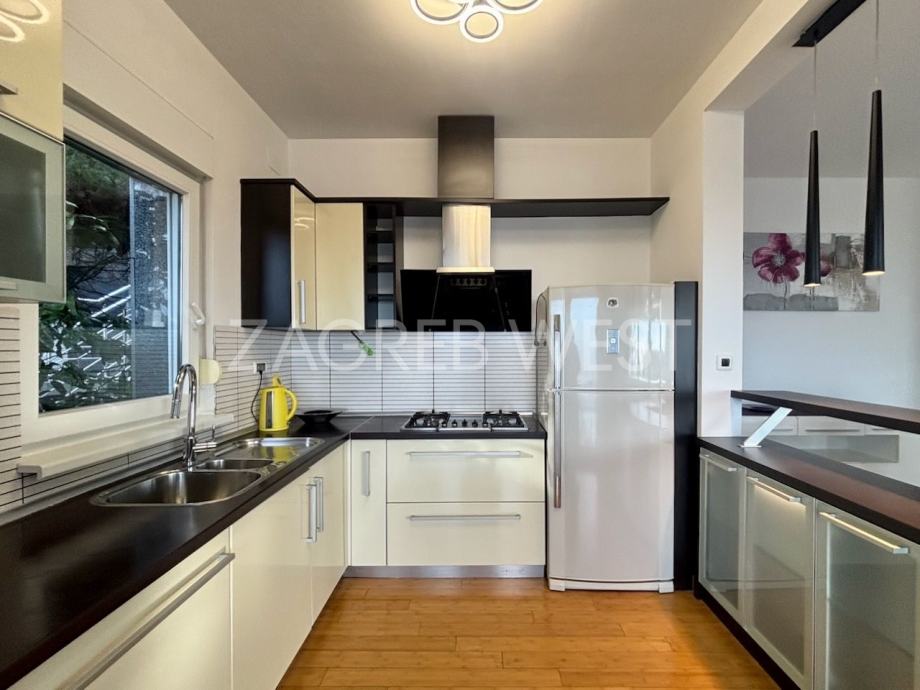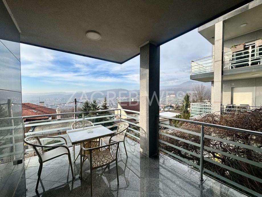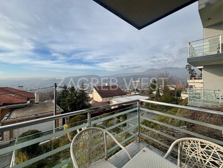 Stan u novijoj zgradi s tri stana, u mirnoj ulici i s odličnim pogledom na grad i Sljeme. Stan je odličnog rasporeda, vrlo ugodnog za svakodnevan život, a sastoji se od velikog dnevnog boravka s kuhinjom, blagovaonicom i izlazom na terasu, spavaće sobe s kupaonicom tri dodatne spavaće sobe, velike kupaonice, i gostinjskog wc-a. Uz stan dolazi garaža, natkriveno parkirno mjesto i veliko spremište. Dodatna prednost je predivan zajednički vrt sa sjenicom i bazenom koji se dijelie sa susjednom urbanom vilom. Blizina javnog prijevoza, više škole, vrtića, i 10min vožnje od Britanskog trga.
