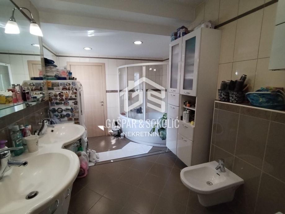 Neto površina stana je 95,7m2 dok dodatno mu pripadaju balkon od 8,7m2, balkon od 3,25m2, natkrivena terasa 42,96m2, garaža 19,33m2, 5 spremišta (površine: 6,56m2, 4,77m2, 7,87m2, 5,46m, 5,98m2), vrt od 82,77m2 i natkriveni dio dvorišta sa roštiljem/pečenjarom od 22,18m2.