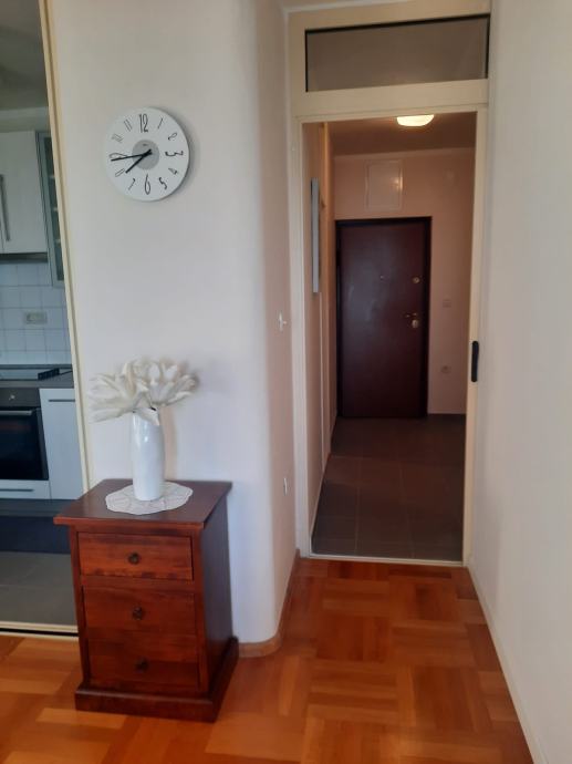 Dugoročno se iznajmljuje lijepo uređen stan s pogledom na more smješten na devetom katu zgrade na Trsteniku. Stan ima 42m2 te je kompletno južno orijentiran. U blizini stana se nalaze svi potrebni sadržaji, a do mora je 10 minuta pješice. Dostupan je od 05.10.2025.na dugoročno po cijeni od 800€ mjesečno+režije.