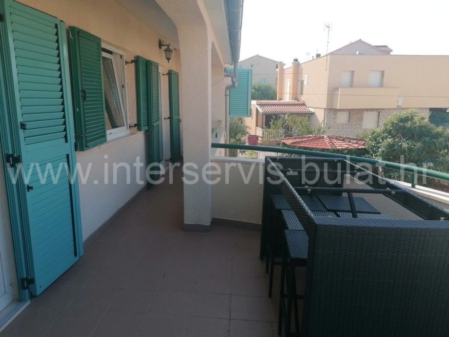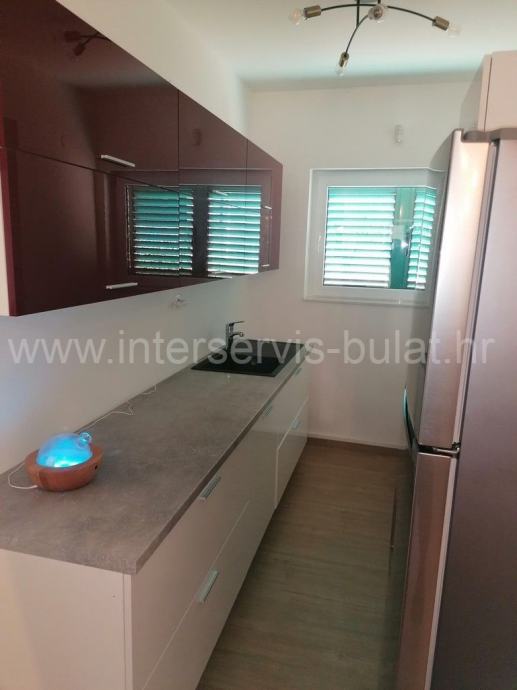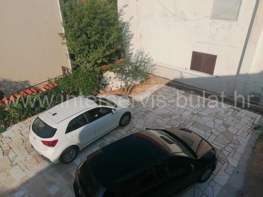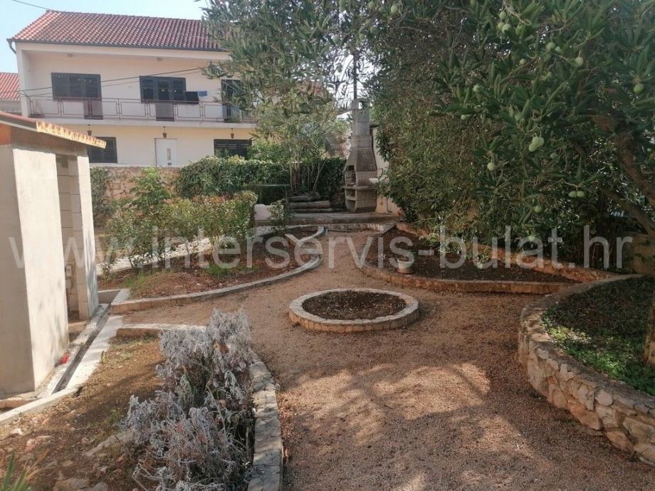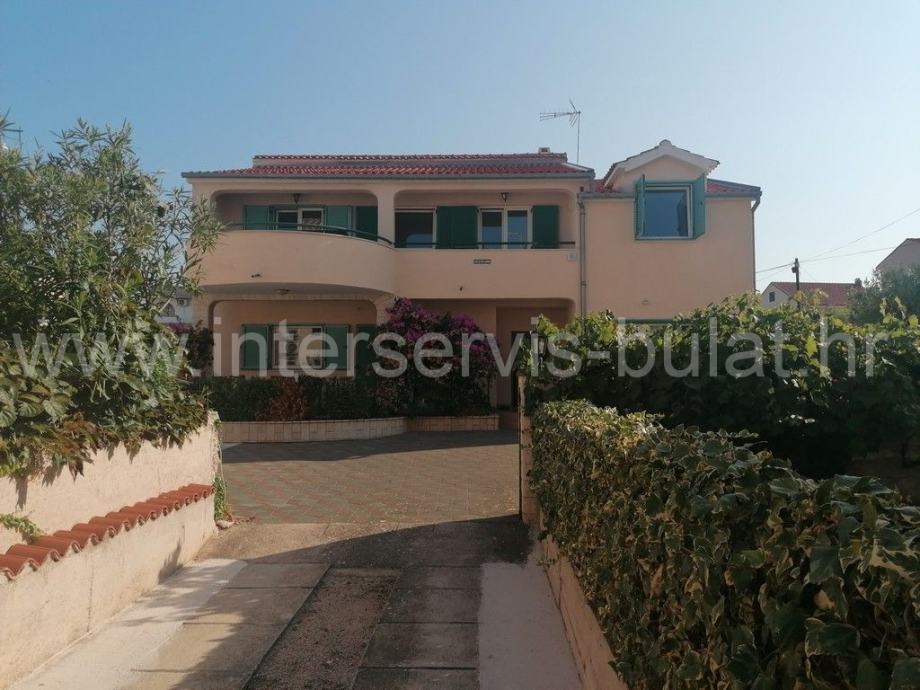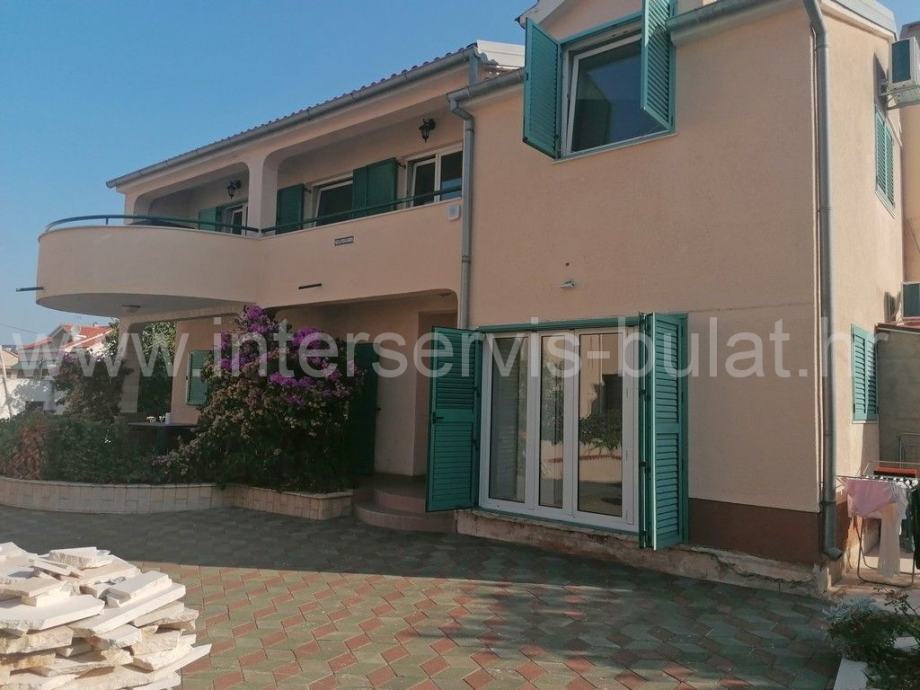 Na svega 95m udaljenosti od mora nalazi se kuća sa dva stana. U prizemlju se na oko 112m2 nalazi komforan trosoban stan uz dodatak terase. Posebnim ulazom i unutarnjim stepenicama penjemo se na kat gdje nalazimo prostran dvosoban stan iste stambene površine kao i stan u prizemlju, ali sa dvije kupaonice. Pripada mu terasa površine 25m2 sa malim pogledom na more. Oba stana su uređena, održavana i useljiva.