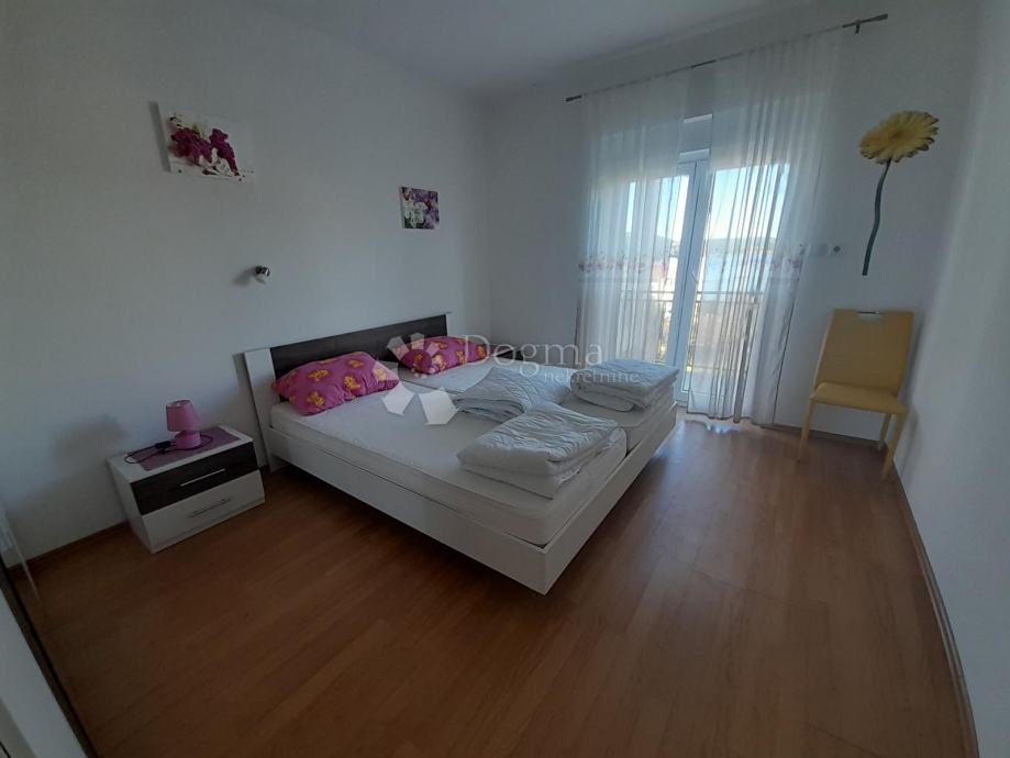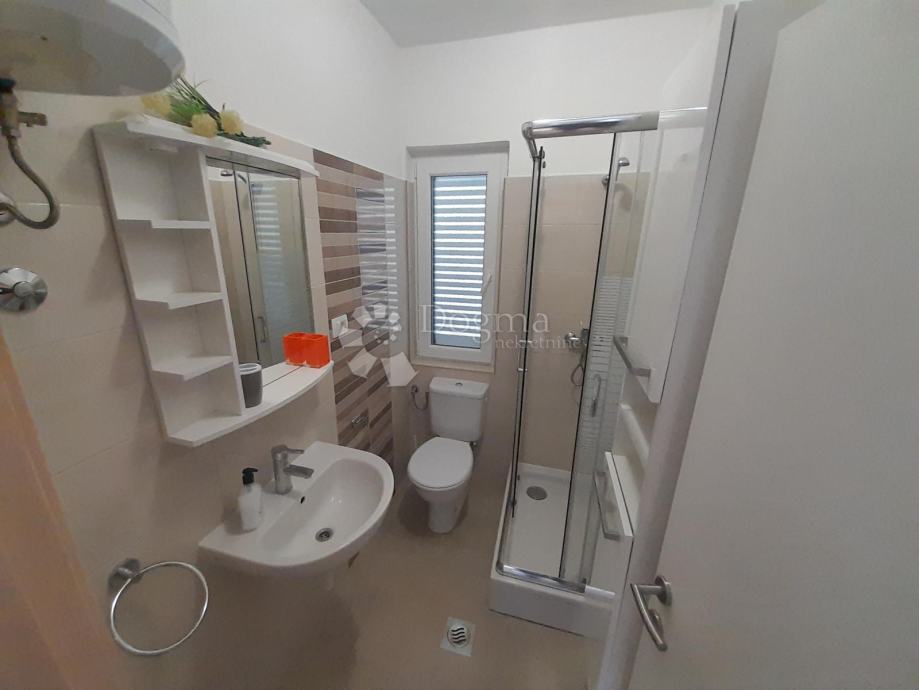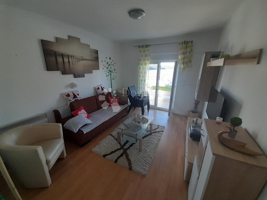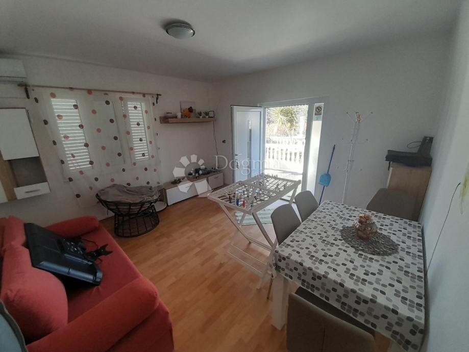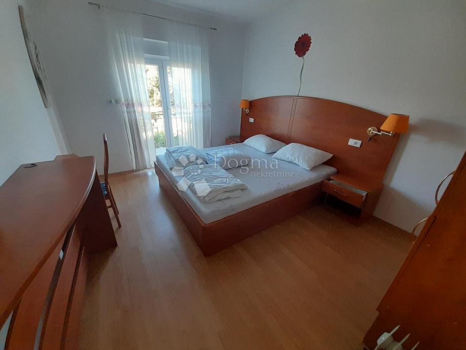 Ova nekretnina sastoji se od prizemlja, prvog i drugog kata. Kuća ukupno ima 4 zasebna stana od kojih je najveći onaj na prvome katu. Sadrži 100m2 namještenog prostora sa terasom i prekrasnog pogleda na more.