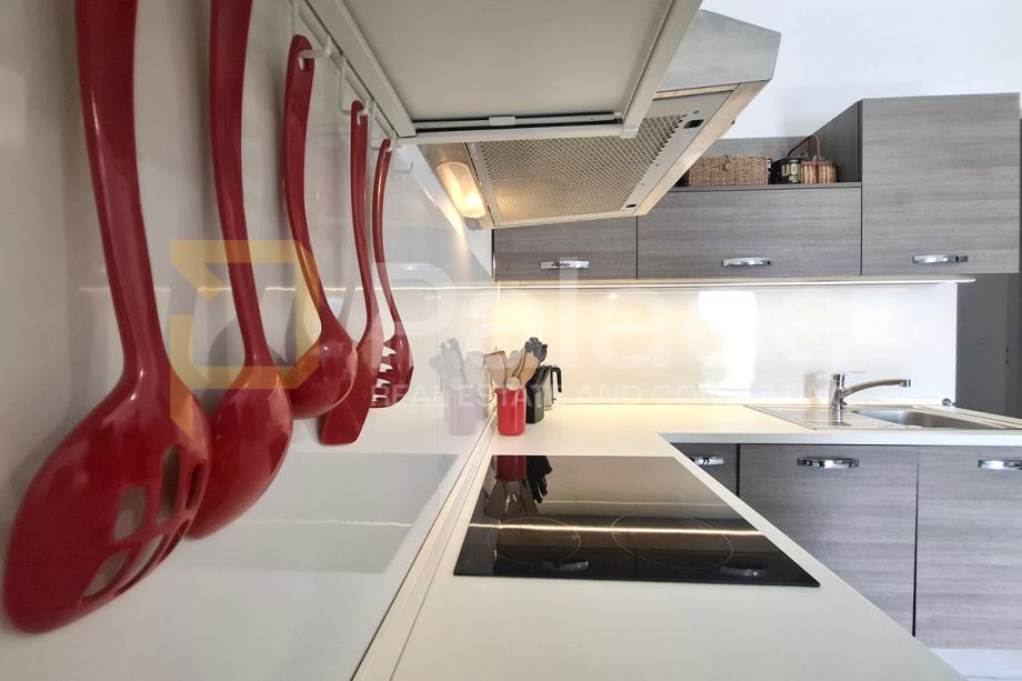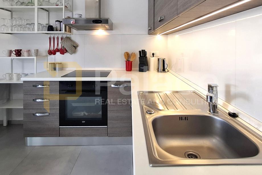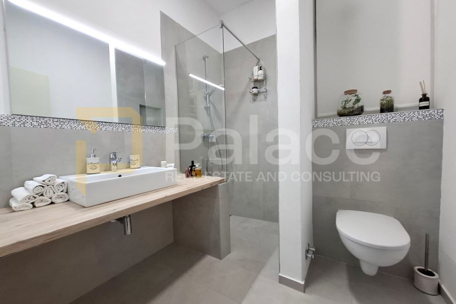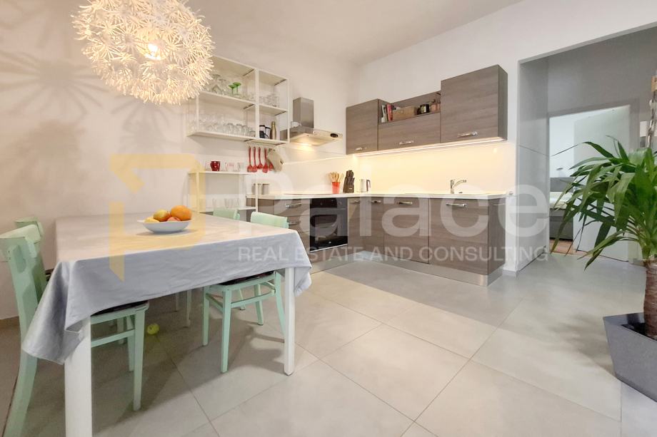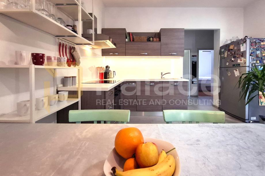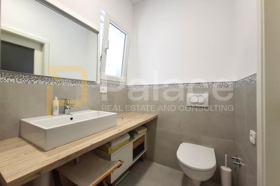 Garaža je pretvorena u prostor za druženje, čineći ovo mjesto još prikladnijim za obiteljska okupljanja i prijatelje. Također, priprema za ljetnu kuhinju je već postavljena ispred prostrane terase površine 31,42 m2, što omogućava uživanje u vanjskim prostorima tijekom toplijih mjeseci.