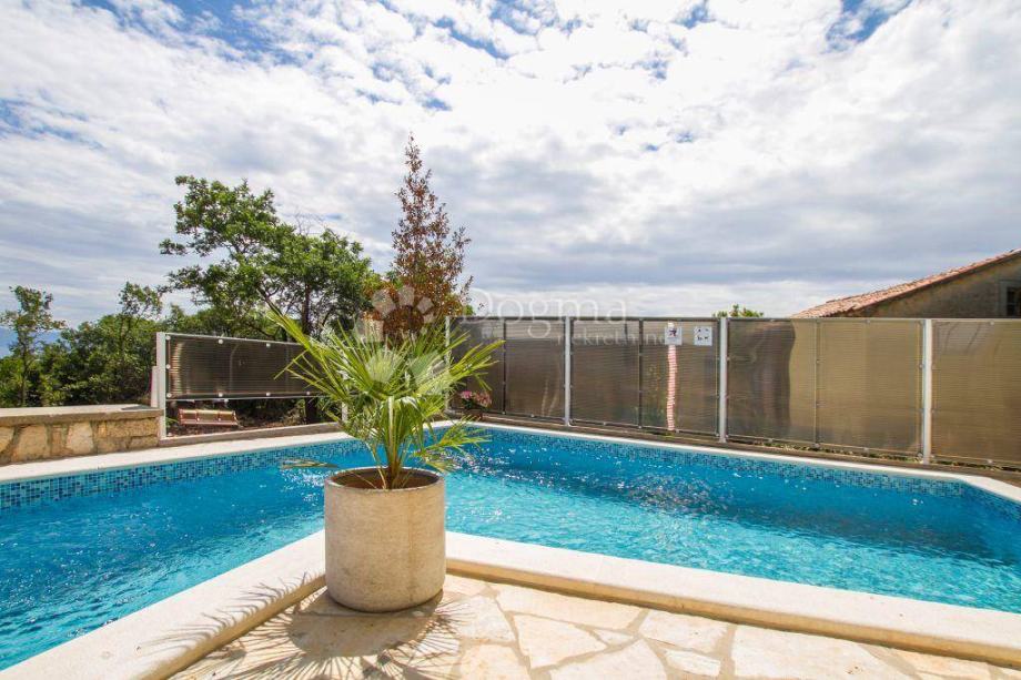 Prekrasna mediteranska kuća sa bazenom, smještena u malom mjestu u okolici Labina, koje se uzdiže na brežuljku iznad mora. Sastoji se od dva objekta sa zasebnim ulazima, povezanim sa prostorijom za rekreaciju i druženje. Sa kata kuće pruža se prekrasan pogled na more i Kvarnerski zaljev. Malom, užom cesticom za svega desetak minuta hoda stižete do manje plažice dok automobilom veoma brzo možete stići do mjesta gdje se nalaze šljunčane i betonske plaže. Za 10-tak minuta vožnje stižete i do mjesta Sv. Marina, koje je osim mora i plaža poznata i kao centar za ronjenje. U blizini nalazi se i Skitači, najvišoj točki Labinštine poznatoj po izvoru čija je voda prema legendi ljekovita za oči, te starom gradu Labinu.