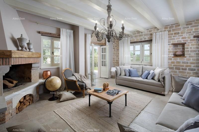 Prizemlje kuće: dnevni boravak gdje dominira kamin, izlaz na veliku, natkrivenu terasu. Vanjski kamin, lounge zona, opremljena kuhinja sa blagavaonom, zaseban toalet i tuš .