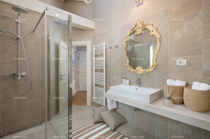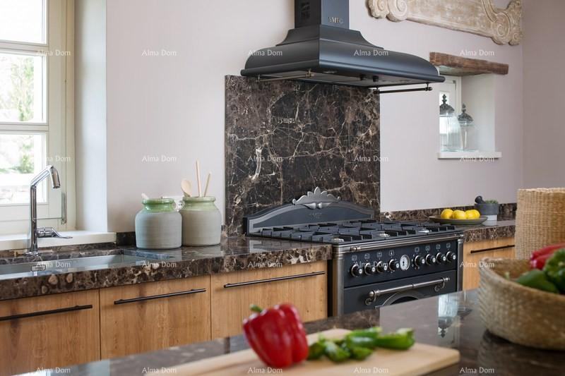 Prizemlje kuće: dnevni boravak gdje dominira kamin, izlaz na veliku, natkrivenu terasu. Vanjski kamin, lounge zona, opremljena kuhinja sa blagavaonom, zaseban toalet i tuš .