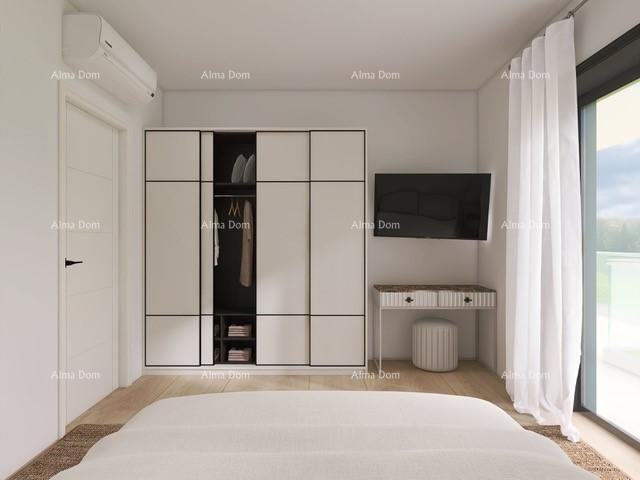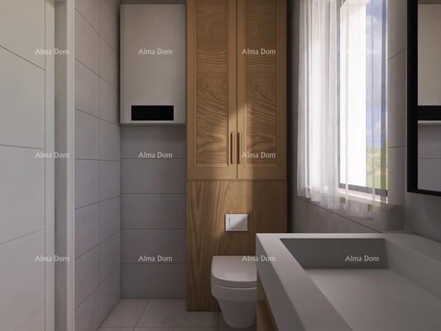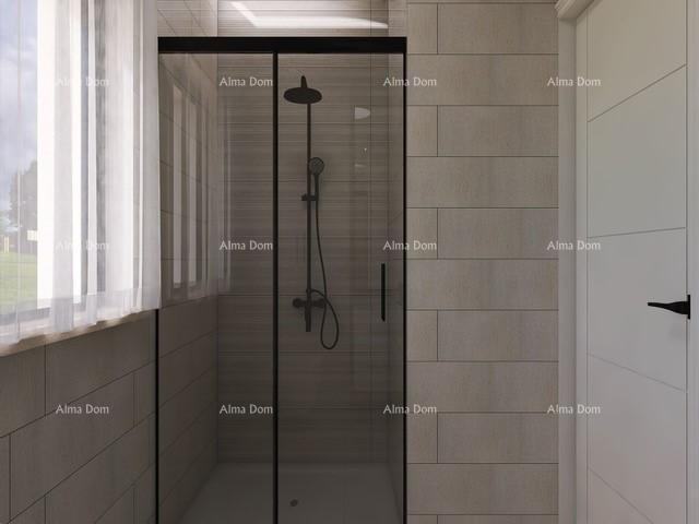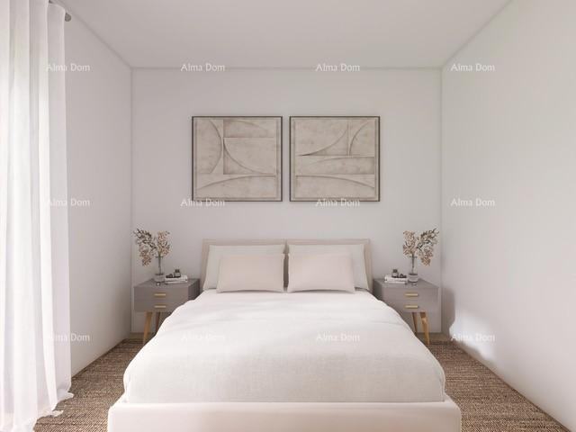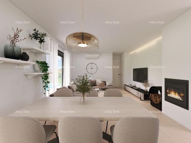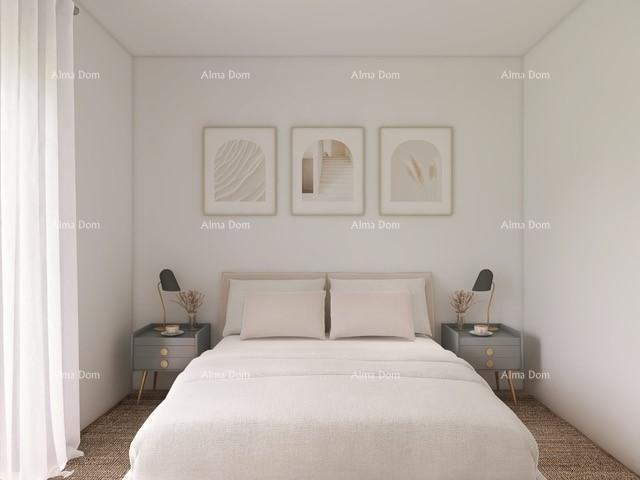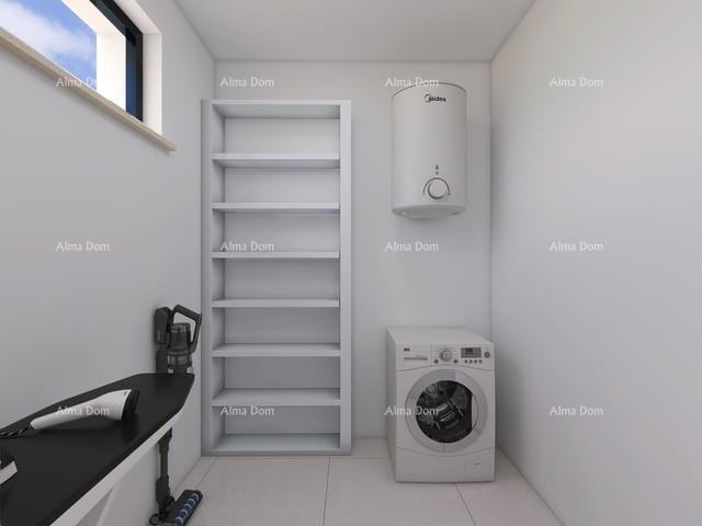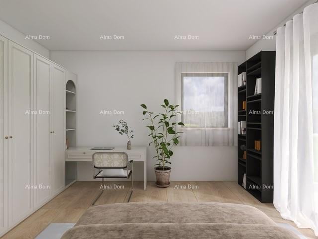 Sastoji se od ulaza, kuhinje, blagovaonice, dnevnog boravka, 1 spavaće sobe, kupaonice i dodatne prostorije/vešeraja. Iz dnevnog boravka se izlazi na veliku terasu s ljetnom kuhinjom.