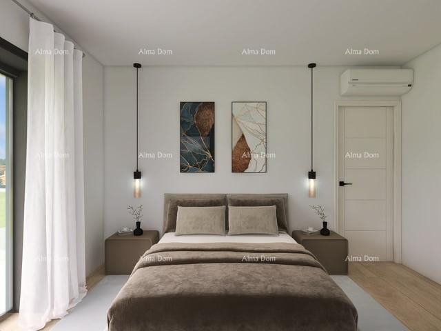 Prvi kat uključuje predsoblje, tri spavaće sobe, dvije kupaonice i veliku terasu na koju imaju izlaz sve spavaće sobe. Kuća posjeduje bazen i parkirna mjesta na okućnici.