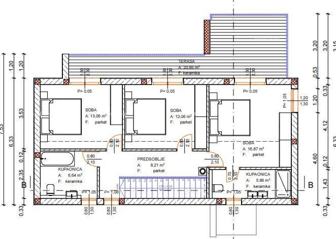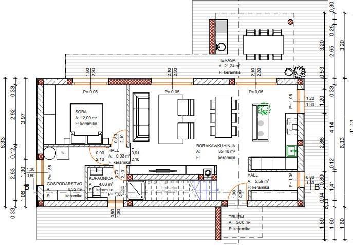 Kuća će imati solarne panele, kamin, el. podno grijanje na Wi-Fi, pločice u prizemlju i parket na katu.