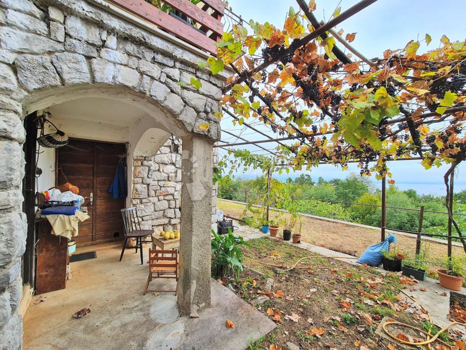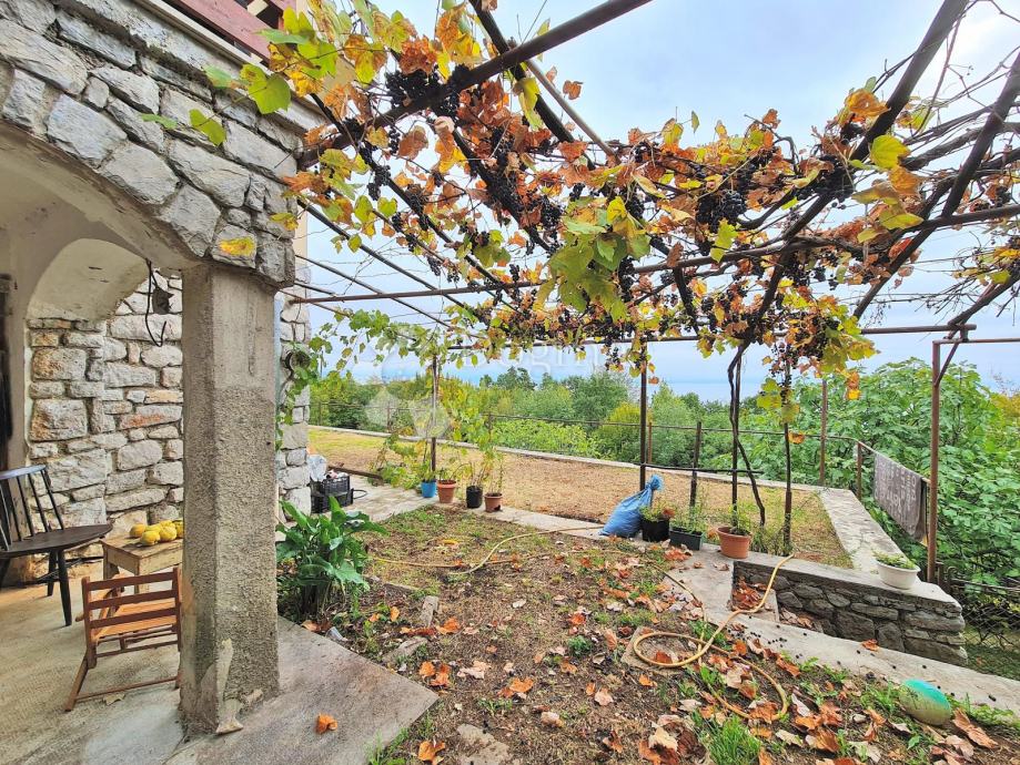 Okućnica je 1030m2 (veliki vrt i otprilike 4. parkirna mjesta) i iz kuće se pruža predivan panoramski pogled na cijeli Kvarner.