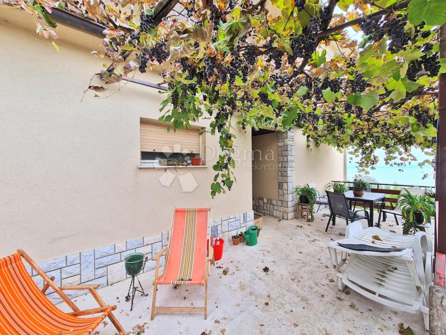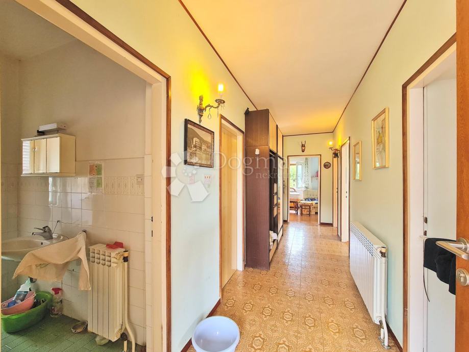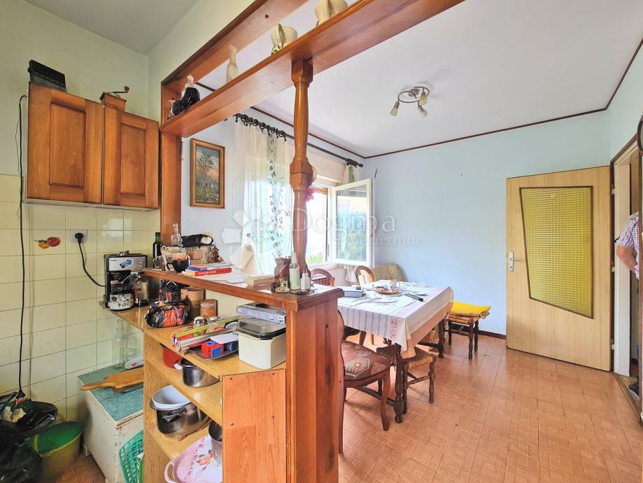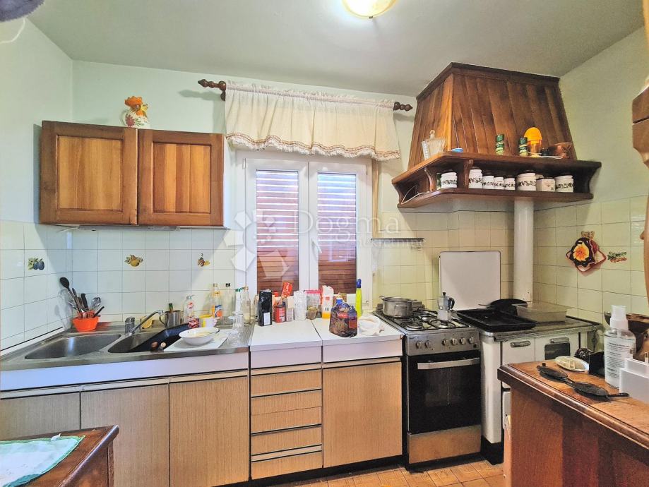 Velika obiteljska kuća sa puno potencijala na predivnoj lokaciji. Kuća se sastoji od tri etaže, u suterenu je konoba od 60m2, na prizemlju je etaža od 100 m2 (3s+db, veliki balkon duž cijele etaže), na prvom katu je također etaža od 100m2 (2s+db, veliki balkon duž cijele etaže), također kući pripada i garaža od 40m2, te ljetna kuhinja ispod garaže.