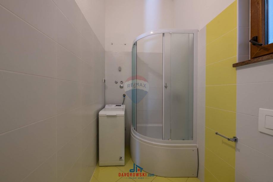 Kuća se sastoji od 4 stana. Jedan u suterenu veličine 40m2, koji se sastoji od dnevnog boravka, kuhinje s blagovaonom, kupaonicom i spavaćom sobom.
