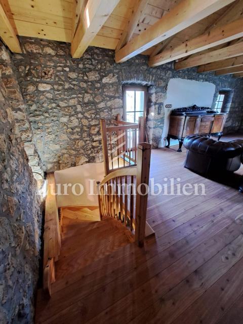 Nekretnina se nalazi u okolici Malinske na otoku Krku i stara je otprilike 200 godina. Radi se o prekrasnoj autohtonoj kamenoj kući. Kompletno je renovirana 2020.godine. Površine je 120 m2, a sastoji se od prizemlja i kata te garaže koja je pretvorena u studio apartman površine cca 25m2. U prizemlju se nalazi prostrana kuhinja s blagovaonom i dnevnim boravkom, spavaća soba, kupaonica te unutarnje stepenice koje vode na prvi kat. Prvi kat može biti uređen kao još jednu spavaću sobu s izlazom na terasu s koje se pruža prekrasan pogled na more i prirodu. Kući pripada okućnica od cca 350m2 gdje se nalazi ljetna kuhinja sa zidanim roštiljem i puno mediteranskog bilja sa sustavom navodnjavanja. Na okućnici ima i mjesta za parking nekoliko automobila. Nekretnina je održavana, krase ju autohtoni detalji i ima odličan raspored prostorija, a namještaj je biran s osobitom pažnjom na detalje. Nalazi se na odličnoj i mirnoj lokaciji okružena prirodom, a more je udaljeno cca 3km. Prilika!