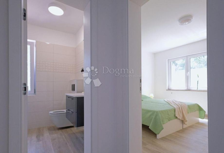 U prizemlju kuće smješteni su kuhinja i blagovaonica, dnevni boravak s kojeg izlazimo na natkrivenu terasu, jedna spavaća soba i jedna kupaonica.