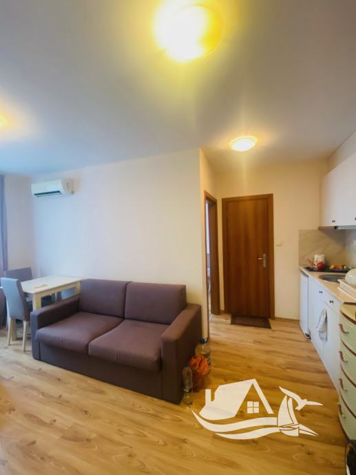 Nudimo na prodaju 2-sobni stan, koji se nalazi u prizemlju od šest katova u privatnom kompleksu Dawn Park, na Sunčevom bregu, Bugarska. Ukupna površina iznosi 39,4 m2. Raspored prostorija je dnevni boravak s kuhinjom, spavaća soba, kupaonica s wc-om. Veliki kompleks i kvalitetna nekretnina u savršenom stanju. Preporučujemo!