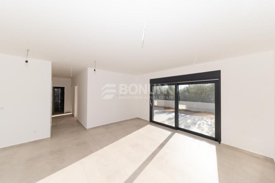 Apartman se nalazi u novogradnji u Tribunju, zgradi smještenoj na odličnoj lokaciji svega 550 m od mora i plaže te 400 m od centra mjesta. Zgrada je dizajnirana prema najvišim standardima gradnje, s naglaskom na kvalitetu i udobnost. Koriste se visokokvalitetni materijali, uključujući vrhunsku keramiku, parkete i sanitarije. Podno grijanje je postavljeno u cijelom stanu, dok su klima uređaji ugrađeni u sve sobe i dnevni boravak. PVC stolarija dolazi s električnim podizačima i komarnicima, a fasada je obložena stiroporom debljine 10 cm, osiguravajući izvrsnu toplinsku izolaciju. Završetak radova predviđen je za proljeće 2026. godine.