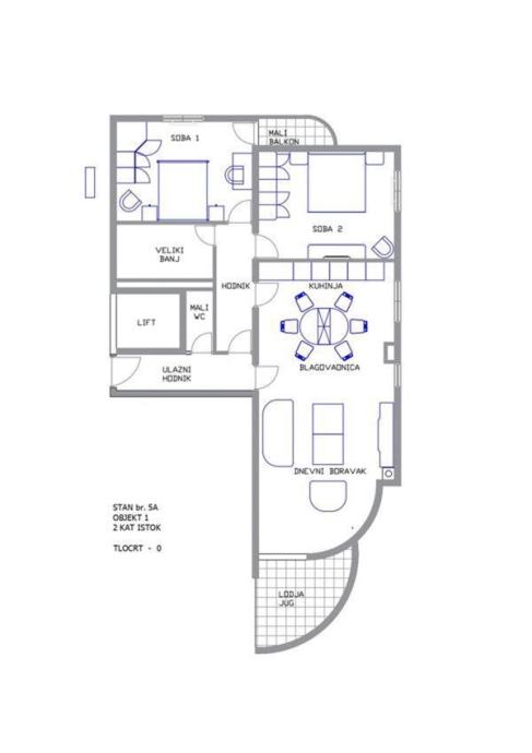 Posredujemo u najmu komfornog dvosobnog stana veličine 100m2, smještenoga na drugom katu zgrade s liftom u predjelu Žnjana.