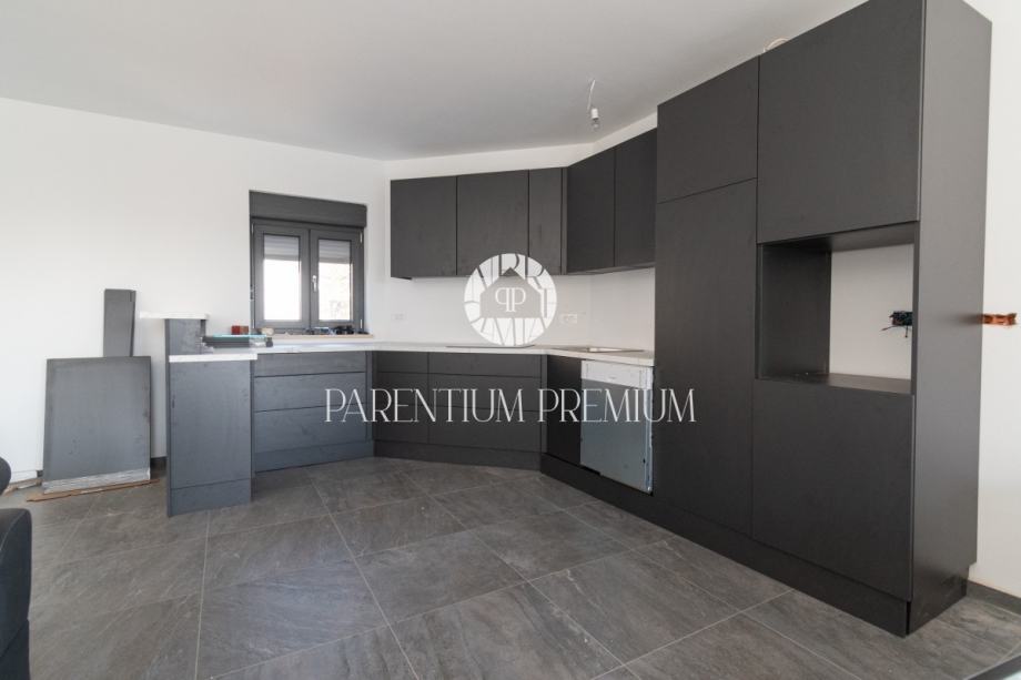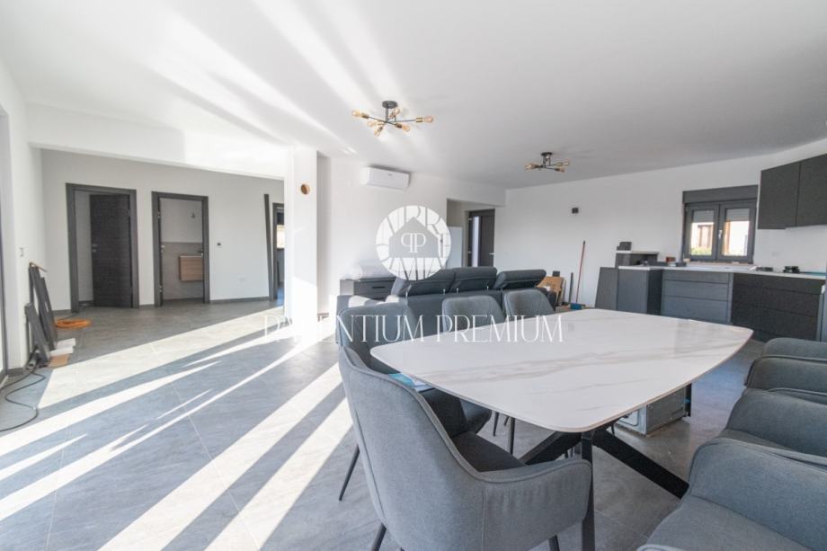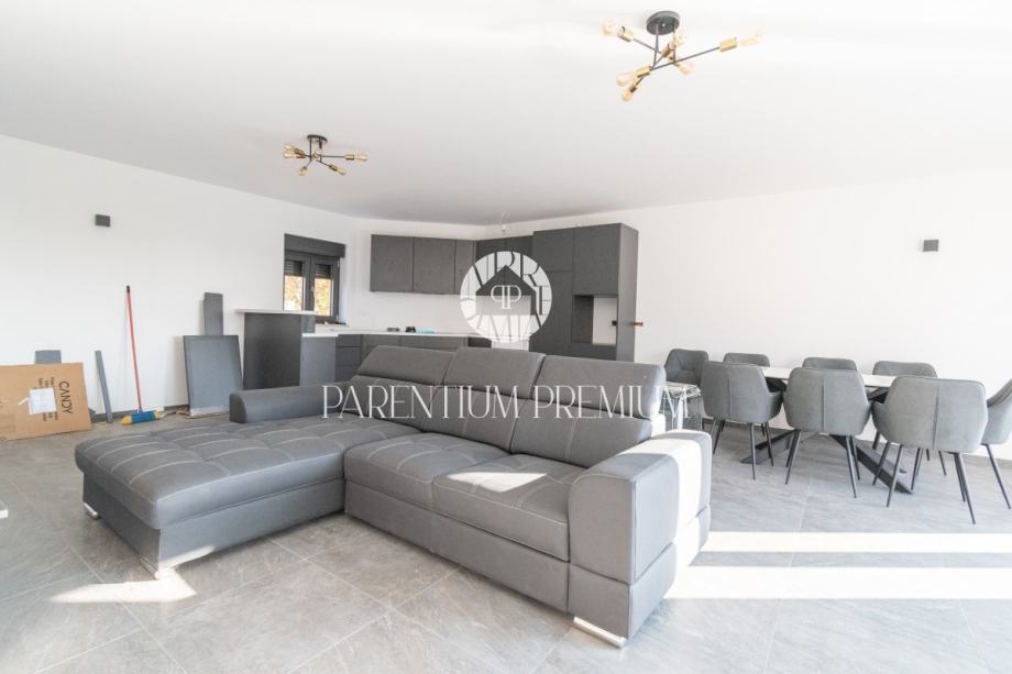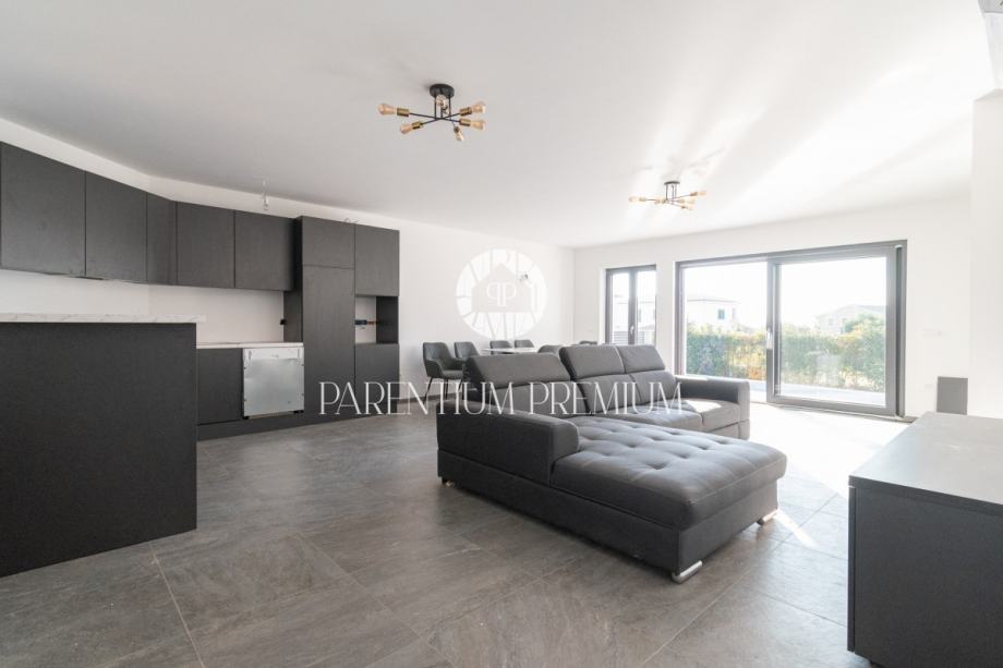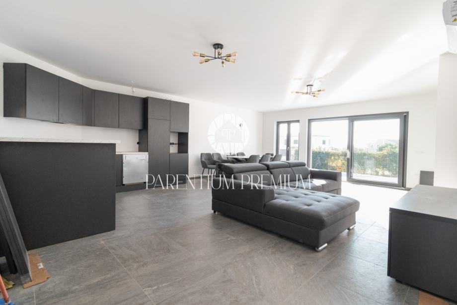 U prizemlju se nalazi ulazni hodnik, gostinjski WC, dvije spavaće sobe svaka sa vlastitom kupaonicom, kuhinja s blagovaonicom i dnevnim boravakom po open space konceptu sa izlazom u na sunčalište gje se nalazi bazen.