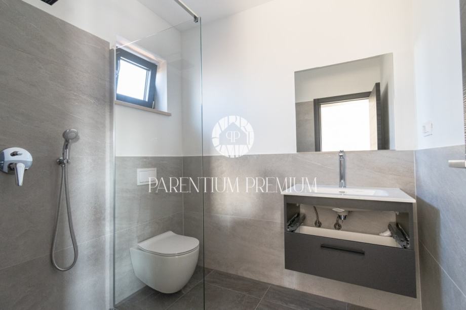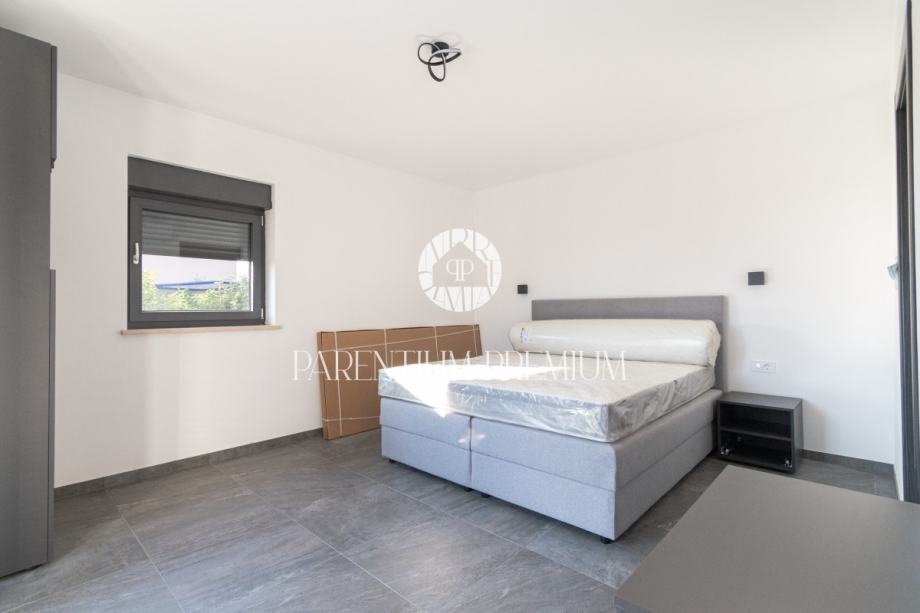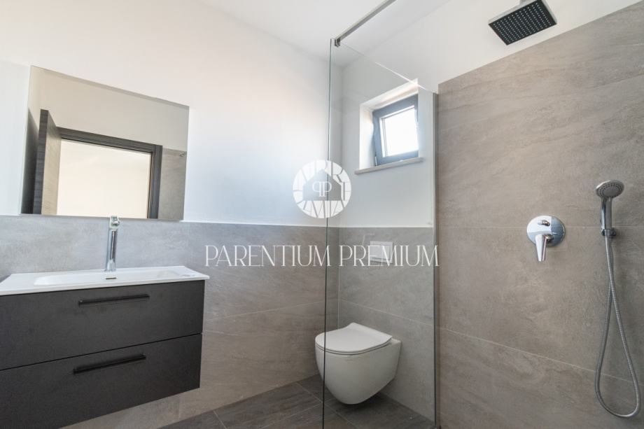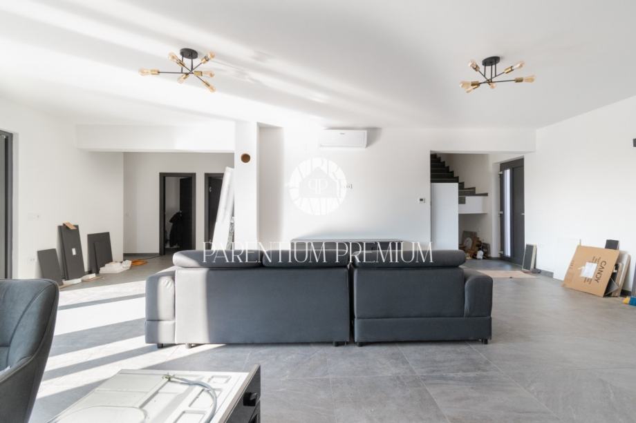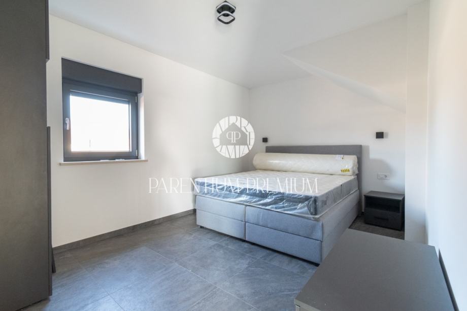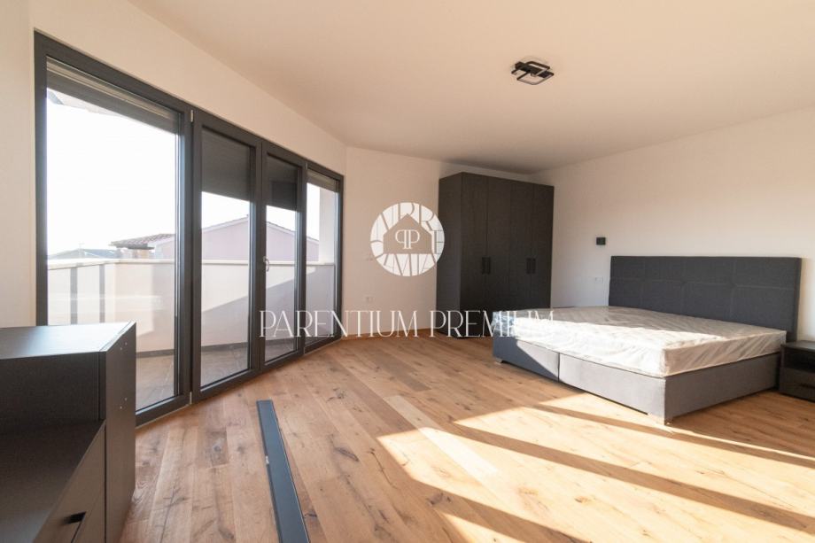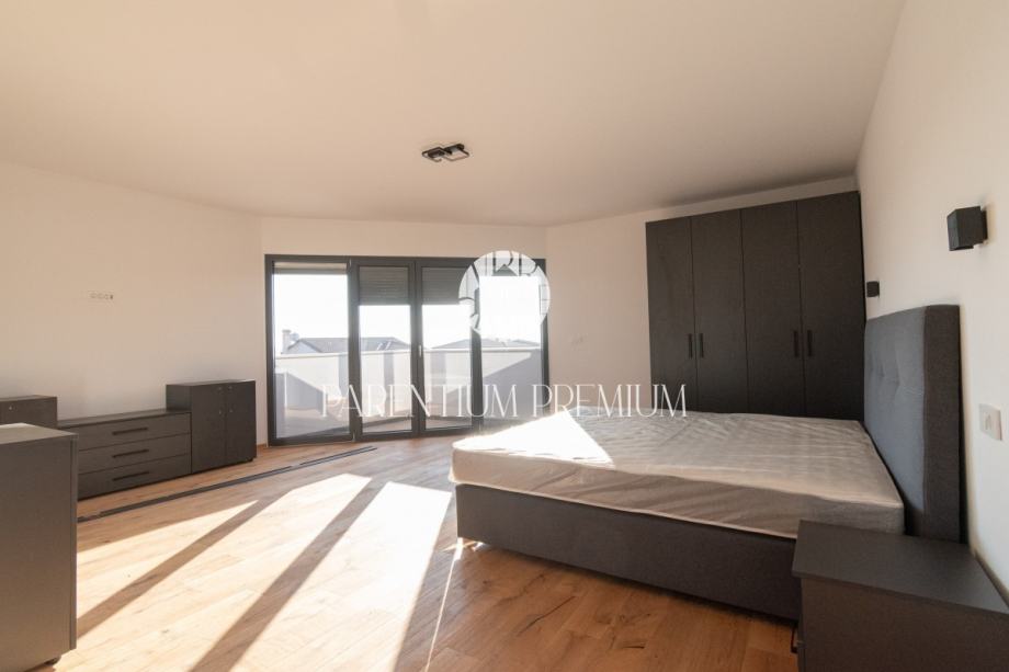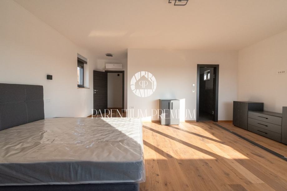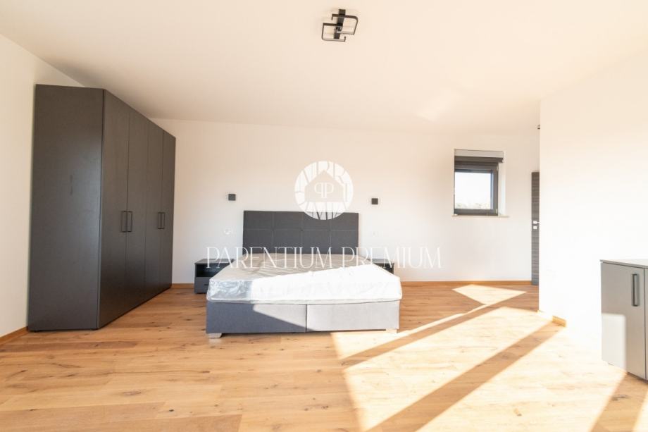 Stepenicama se dolazi na prvi kat dje se nalazi master bedroom sa vlastitom kupaonicom i izlazom na natkrivenu terasu.