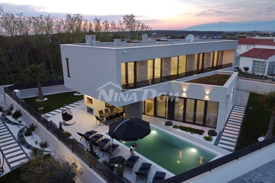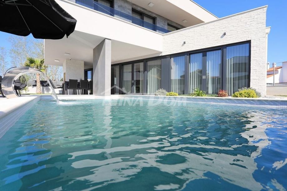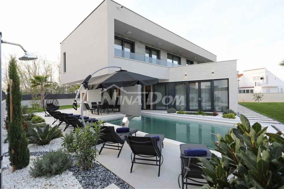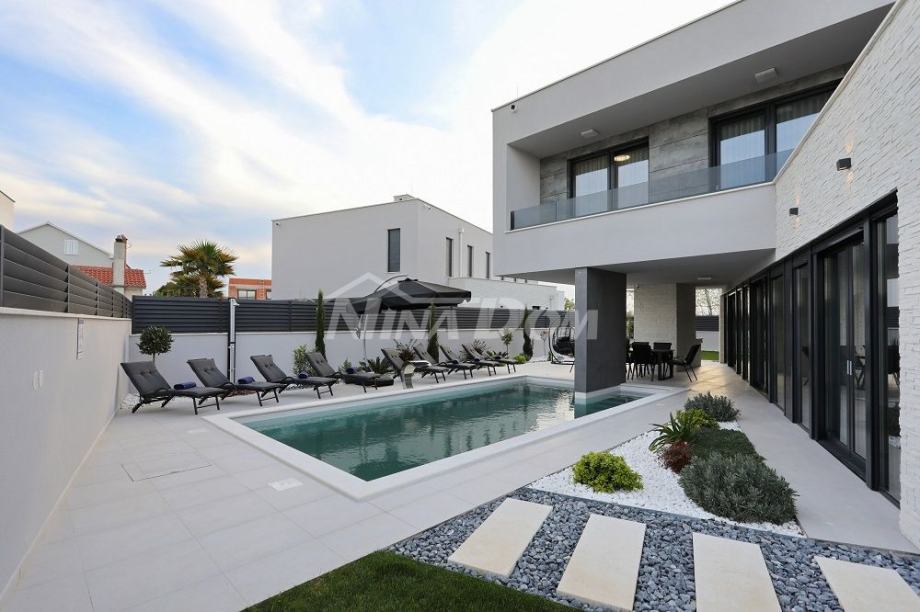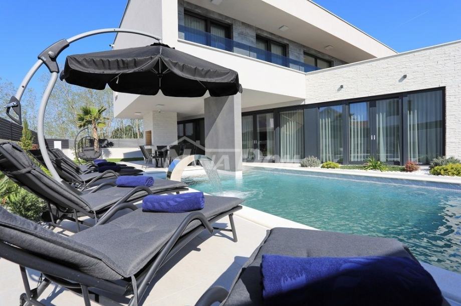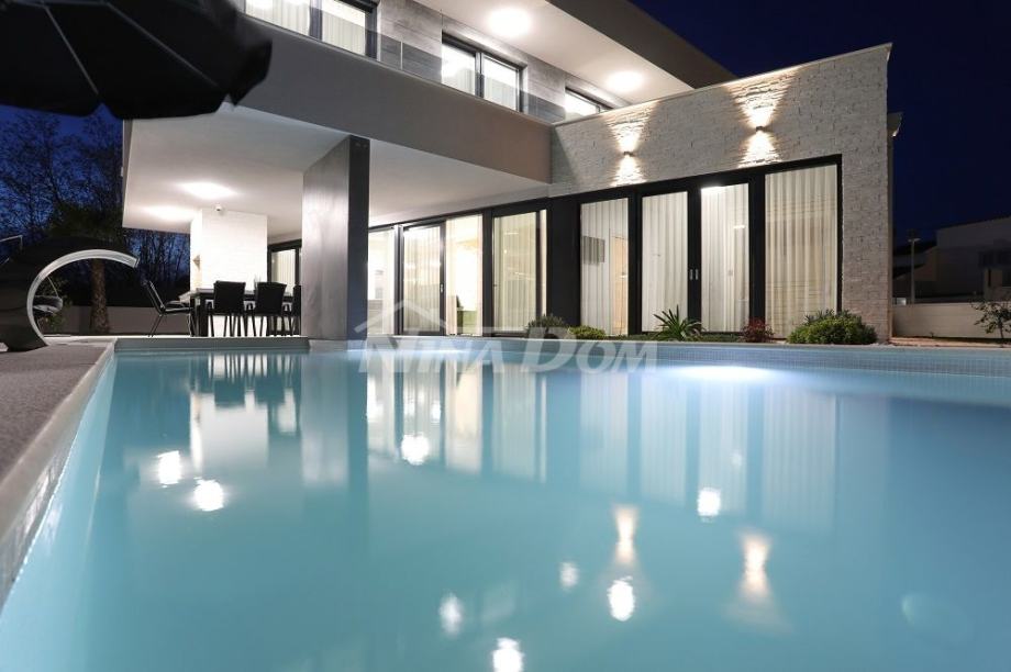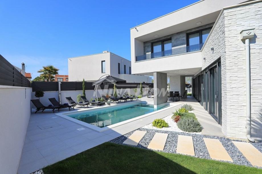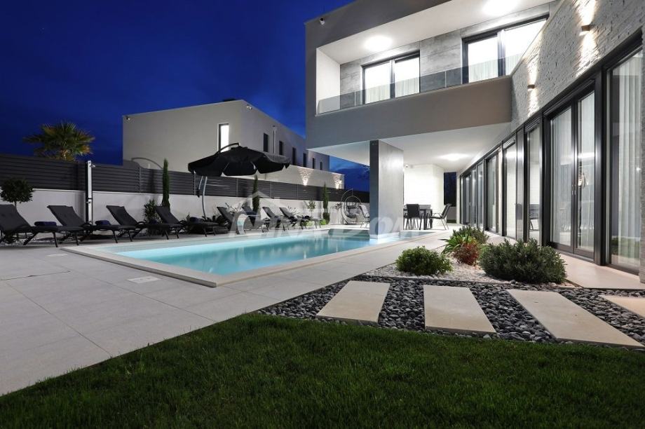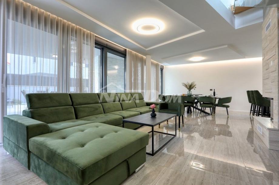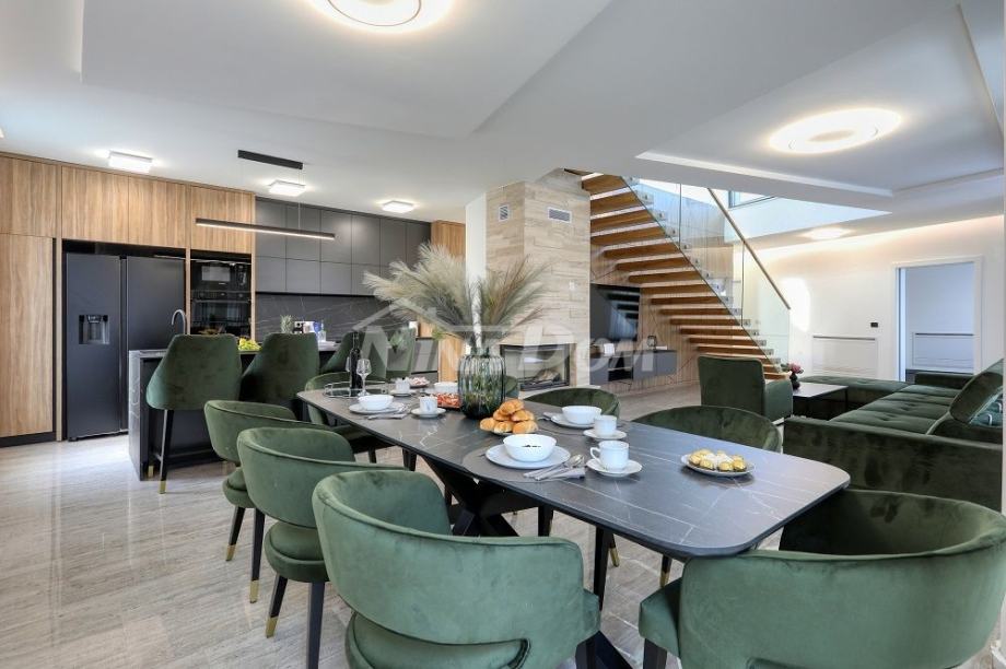 Okućnica uređena prostena 463 m2, u unutarnjem dijelu dvorišta smješten je bazen od 30 m2 s dizalicom topline i prostor za druženje s roštiljem.