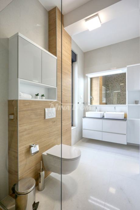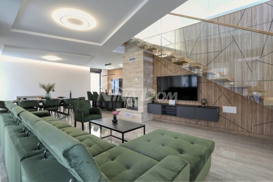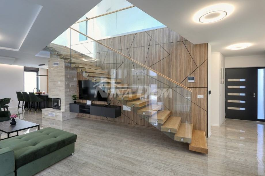 Prizemlje: ulaz/garderoba, wc, kotlovnica, praonica, hodnik, ostava, kuhinja, blagovaonica, dnevni boravak, welness,teretana, natkrivena terasa ukupne podne površine 191,38 m2 od čega korisne površine 148,07 m2.