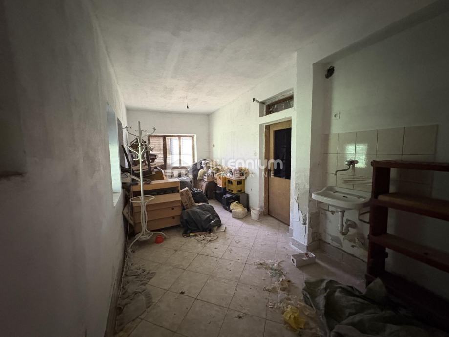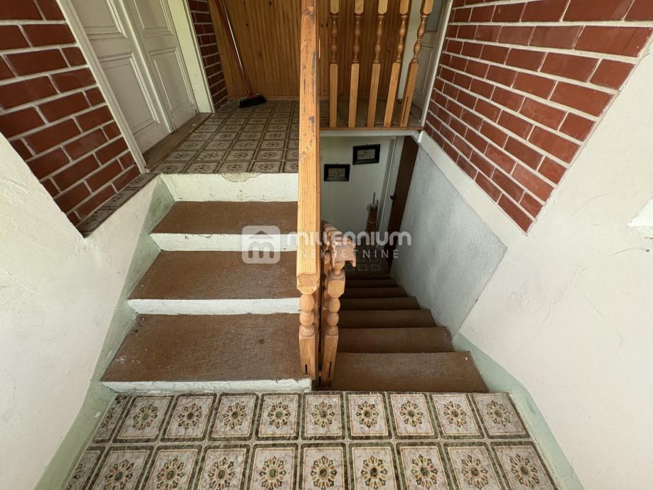 Razvedena je na prizemlje i kat, svaki po 150m2 od čega je prizemlje za urediti, a na katu je namješten i useljiv trosobni stan s dnevnim boravkom.