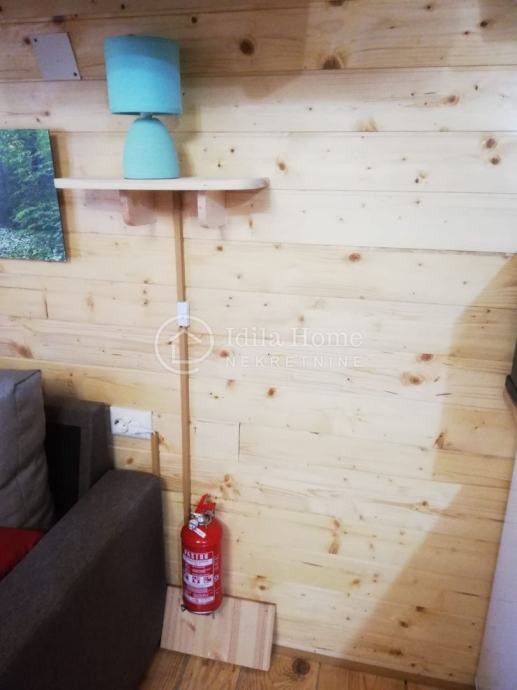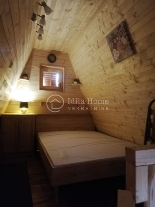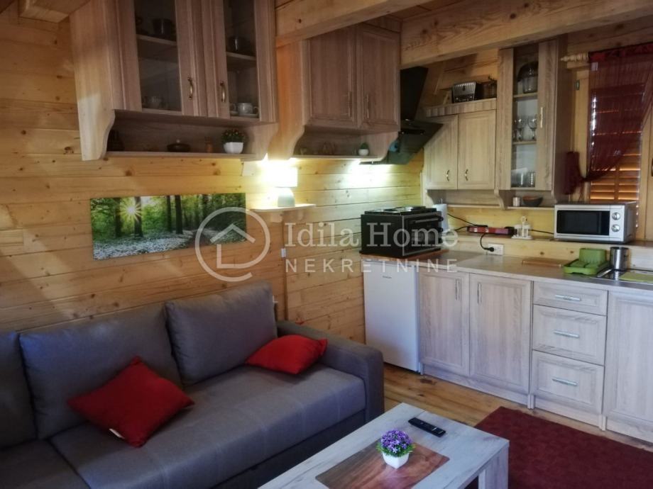 Sadržaj kuće za odmor je dnevni boravak sa kutnom garniturom na rasklapanje, TV, WiFi, kuhinja sa hladnjakom i pećnicom, kupaona sa walk-in tušem te spavaća soba - galerija. Također uz ulaz kuće nalazi se i terasa za odmaranje na svježem planinskom zraku. U sklopu kuće nalazi se veliki parking te pozicija za roštiljanje (roštilj).