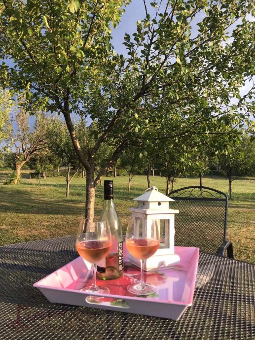 Posjeduje konobu od 40 m2, pomoćni objekt od 30 m2 i više parkirnih mjesta.