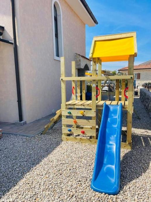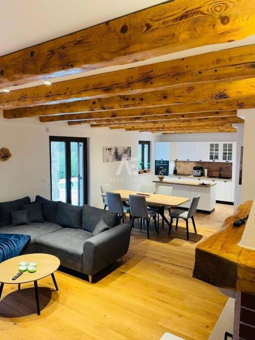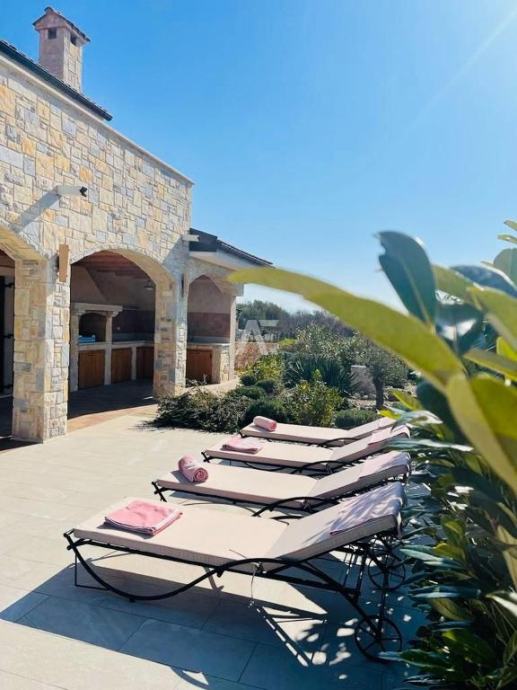 Visokokvalitetna gradnja, odlična oprema! Kuća je opremljena PVC stolarijom sa griljama, podnim oblozima od keramike i seljačkim podom od hrastovine u dnevnom boravku i spavaćim sobama, kupaone su opremljene vrhunskim sanitarijama, svaka soba ima priključak na SAT TV, a na okućnici se nalazi potpuno opremljena vanjska kuhinja sa zidanim roštiljem. Svaka spavaća soba, kao i dnevni boravak opremljeni su klima uređajima, a u dnevnom boravku nalazi se i zidani kamin koji daje poseban ugođaj u hladnijim godišnjim dobima, kao i grijani bazen opremljen toplinskom pumpom. Kuća se nalazi samo 1500m od mora, restorana i trgovine. Idealno za turističku djelatnost! Uredna dokumentacija.