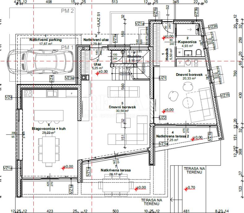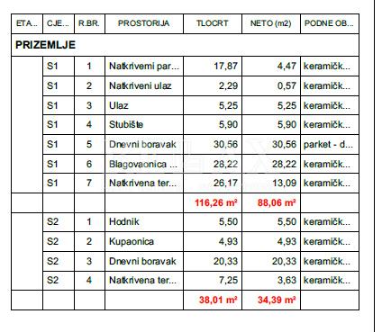 Objekt posjeduje dva parkirna mjesta od kojeg je jedno natkriveno.