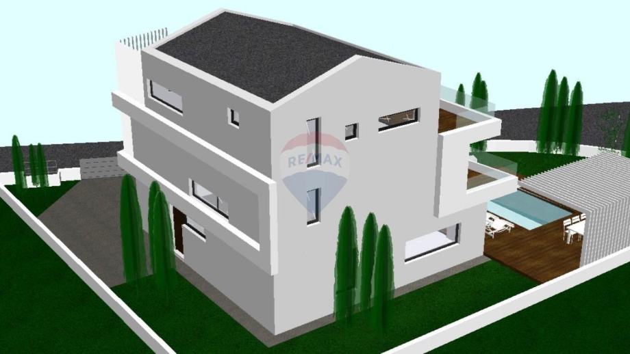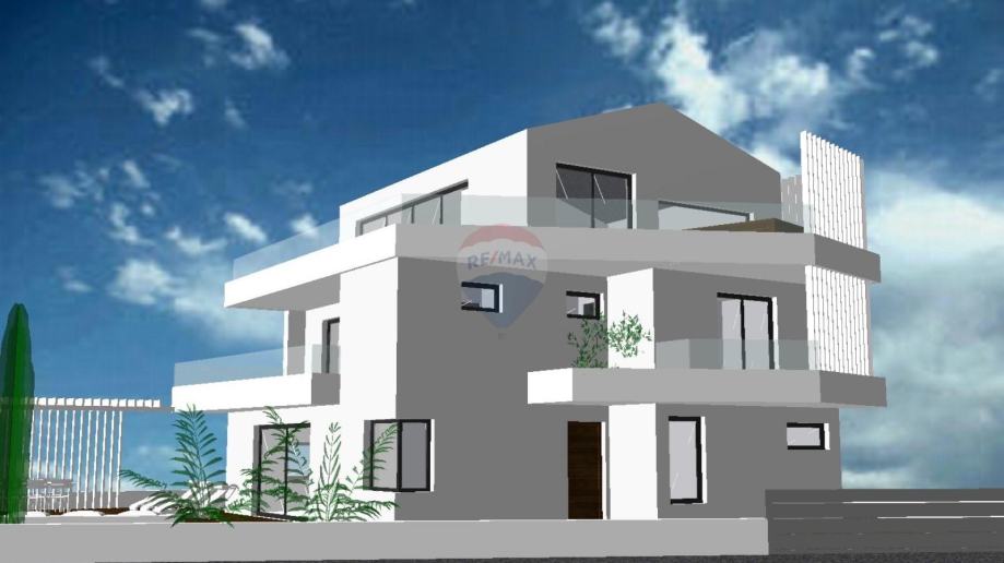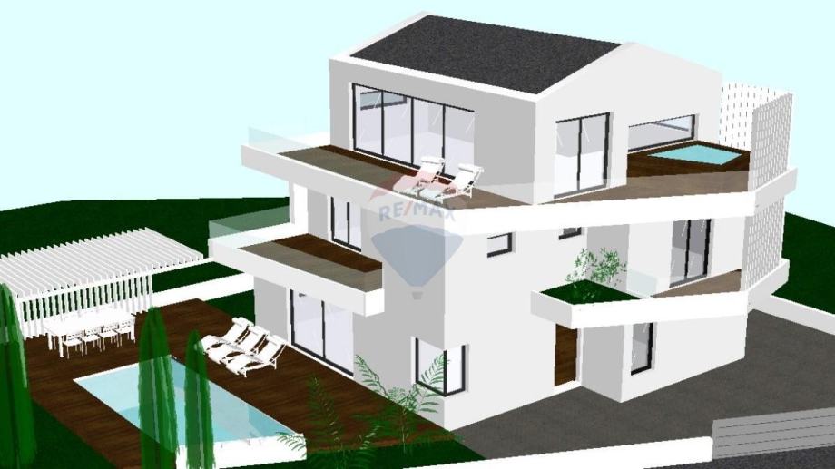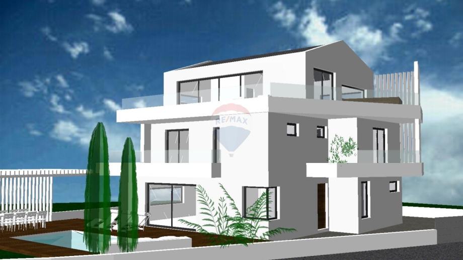 Projekt je osmišljen za izgradnju kuće s dva stana od kojih je stan u prizemlju površine 107.54 m2 te stan na 1. katu 108.33.m2.