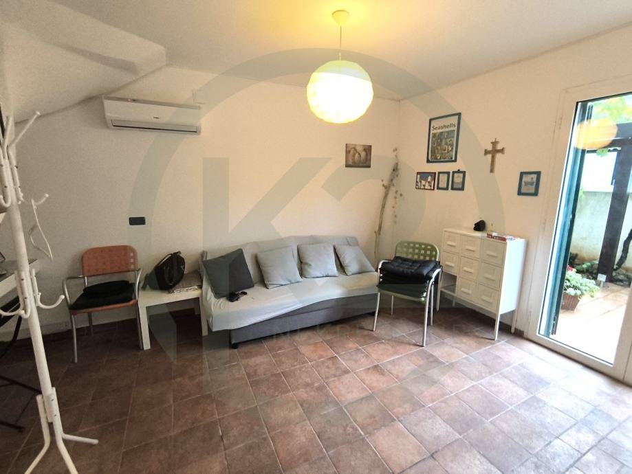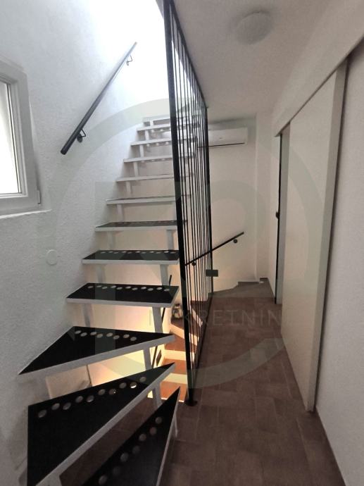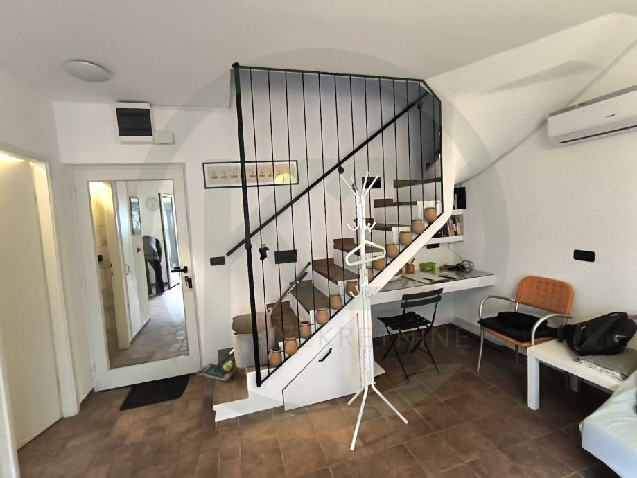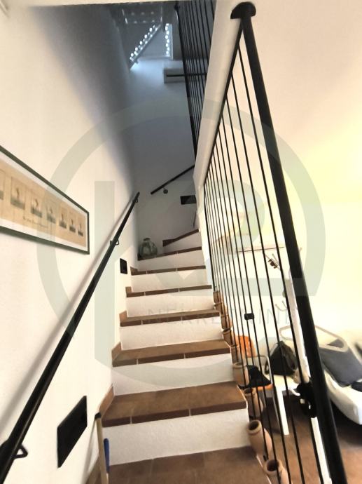 Kuća je potpuno namještena i sastoji se od dnevnog boravka i kuhinje 22,72 m2, kupaonice u prizemlju 3m2, spremište 1m2, terasa u prizemlju 6 m2, spavaća soba 8,3 m2, druga spavaća soba 8,2 m2, kupaonica na prvom katu 3 m2, terasa na drugom katu 12 m2.