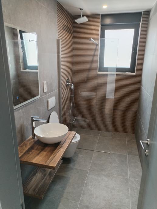 Prodaje se stan sa vrtom u manjem objektu u gradnji u Ližnjanu, svega 400-500 m od plaže... Pripada mu oko 80 m2 vrta. Komforan dnevni boravak i kuhinja, sa 2 sobe i 2 kupatila, veličine cca 70 m2 + vrt + parking. Predviđeno je podno grijanje, tako da se može ugodno boraviti u zimi, te nekoliko estetski modernih detalja, poput ravnog krova, većih pločica, modernih sanitarija, stolarije u boji antracit... Mogućnost kupnje dodatnog parkinga. Cijena na upit