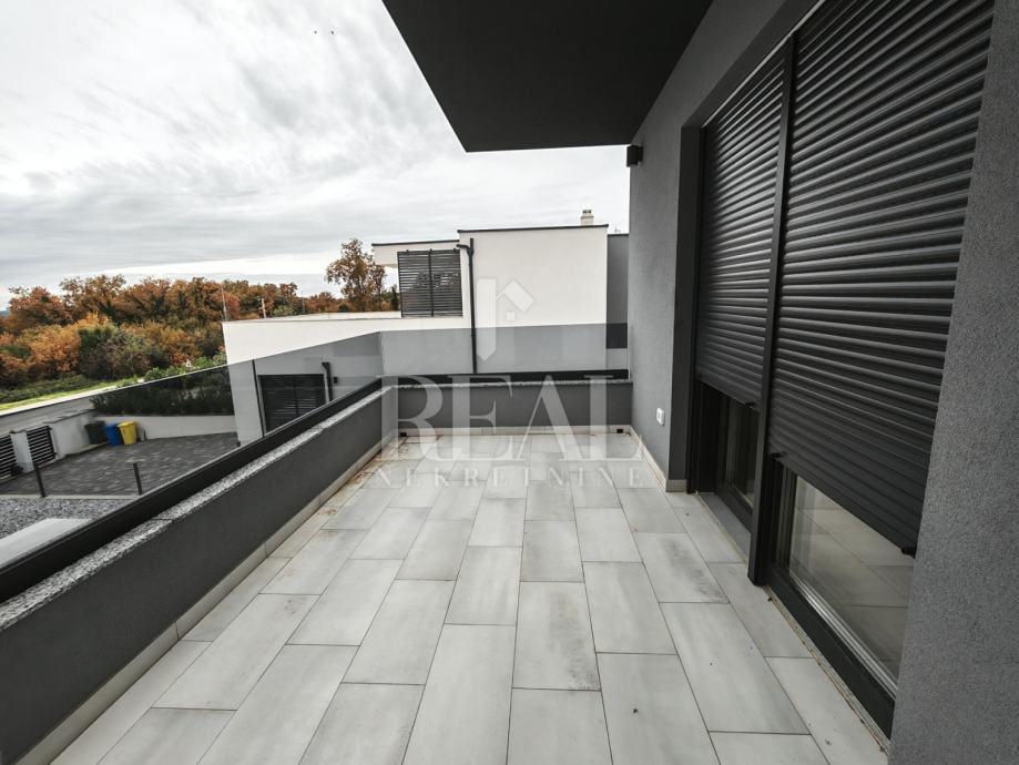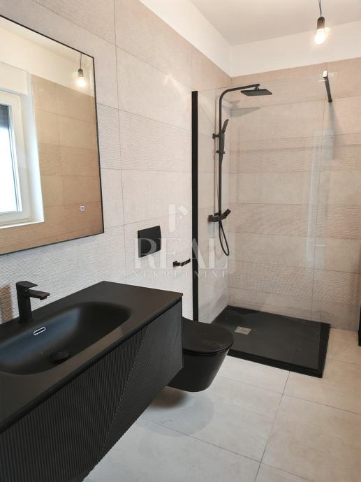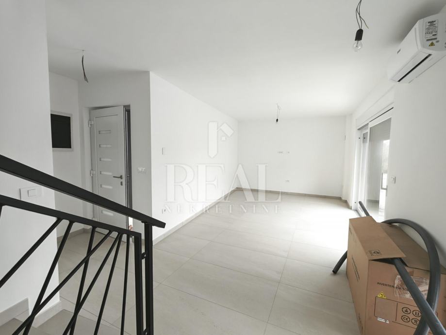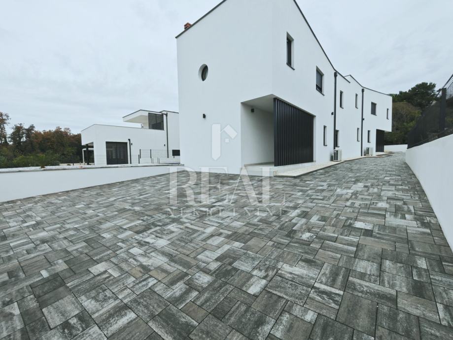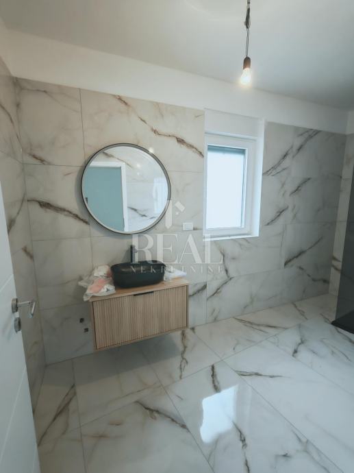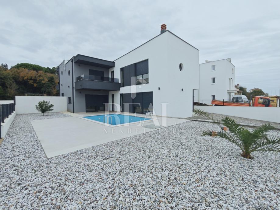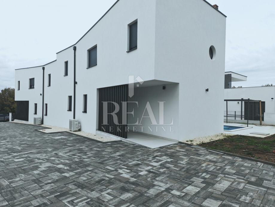 Ližnjan novogradnja dvojna kuća sa bazenom stambene površine 151m2 okućnice 420m2.Ukupno dvije etaže prizemlje i kat objekta.U prizemlju open-space dnevni dio sa kuhinjom i blagavaonicom,vešeraj i kupaonica.Kat 3 spavaće sobe ,kupaonica i terasa sa pogledom na more.Grijanje u objektu na klima uređaje jedna vanjska jedinica i 4 unutarnje.