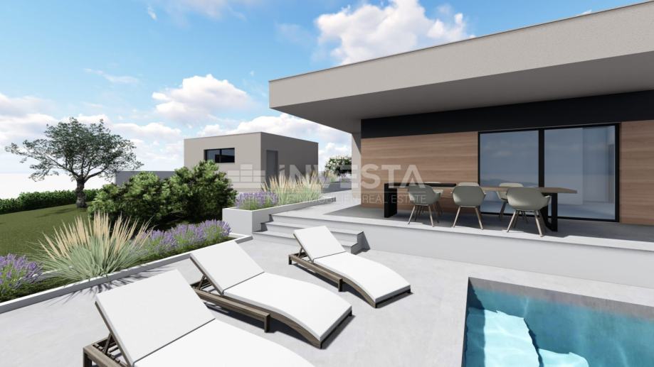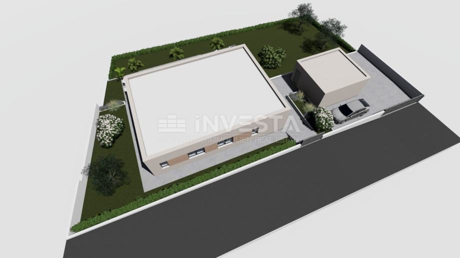 Ova moderna prizemnica savršen je spoj dizajna, udobnosti i funkcionalnosti – idealna kao obiteljski dom, kuća za odmor ili investicija u turizam.
