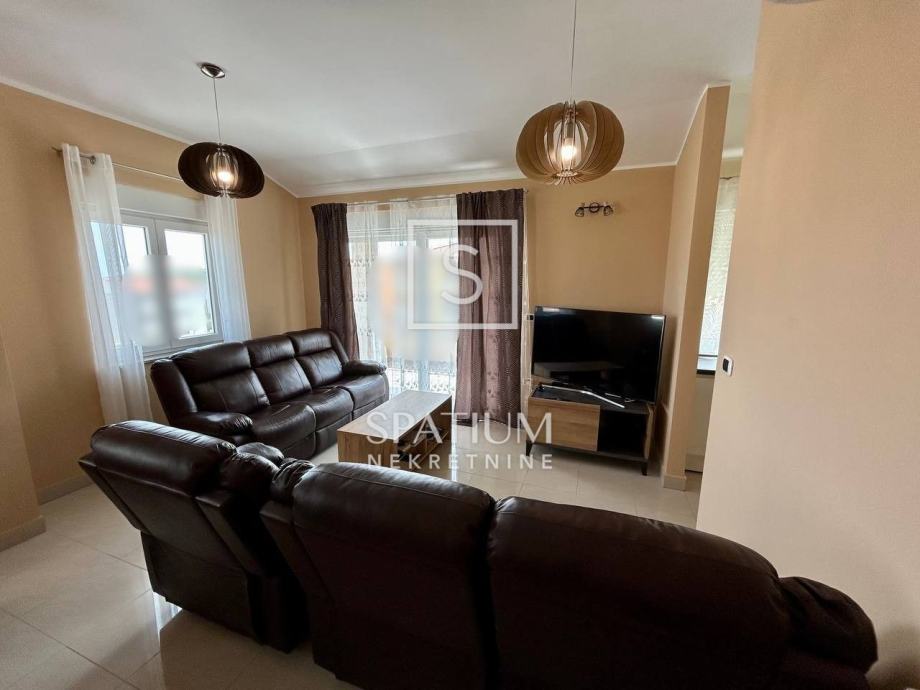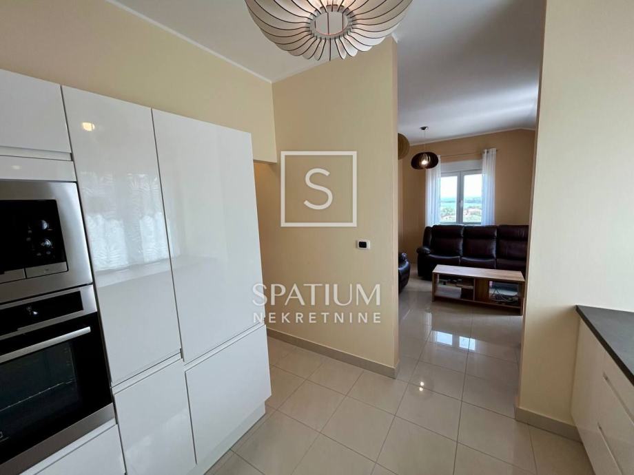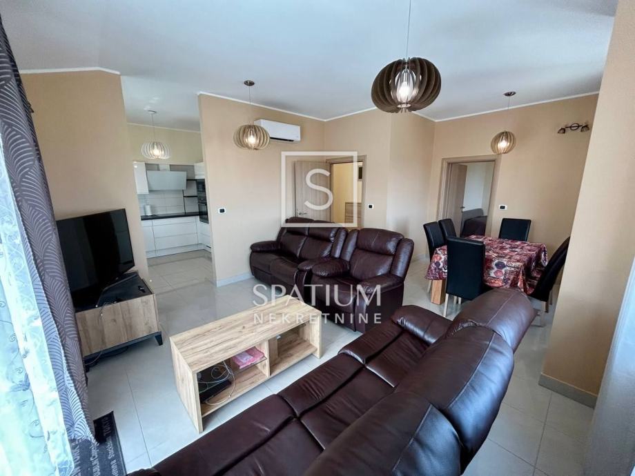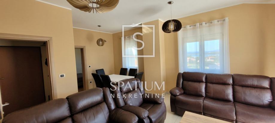 Najveća prednost ovog stana je prekrasan pogled na more koji ćete moći uživati svakodnevno iz dnevnog boravka i sa terase. More je udaljeno svega 1 km, a mirna lokacija i dostupnost sadržaja (pekara, samoposluga, restoran, ljekarna) čini ga idealnim izborom za obiteljski život ili odmor.