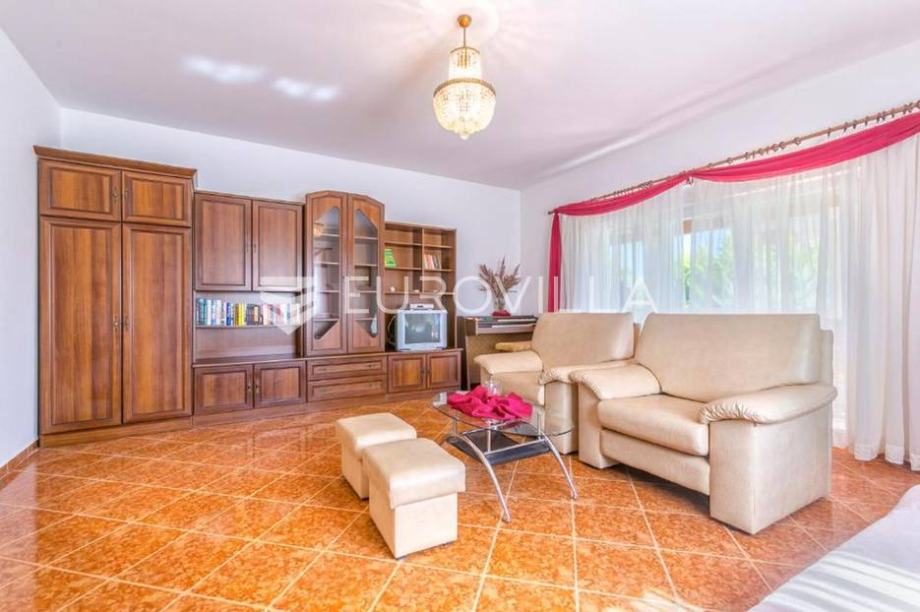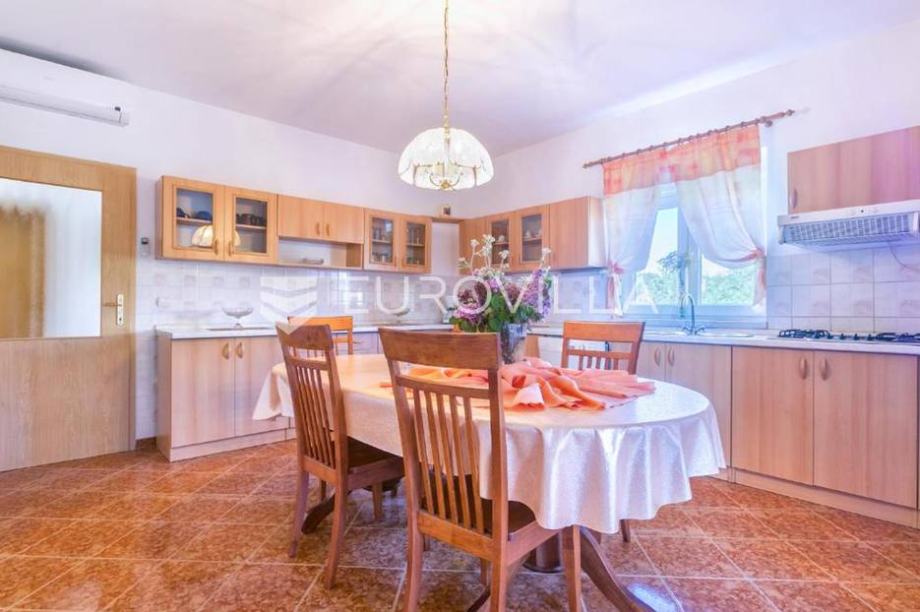 In a quiet part of Ližnjan, a detached one-story house is for sale, with a total living area of 139 m2, which is located on a plot of land of 541 m2. The yard of 402 m2 is completely fenced and landscaped with a small olive grove. This interesting one-story house consists of an entrance hall, a...