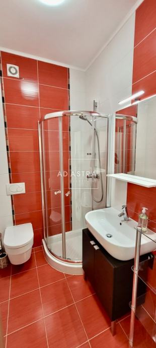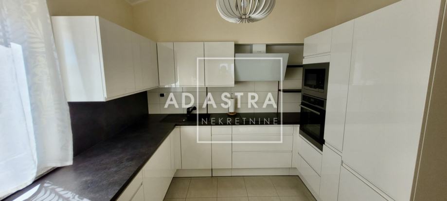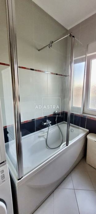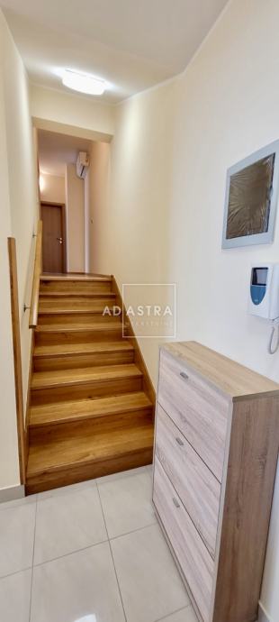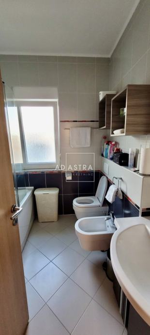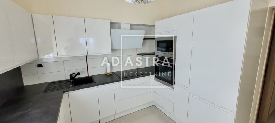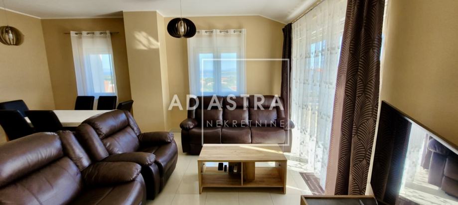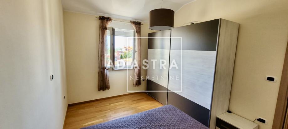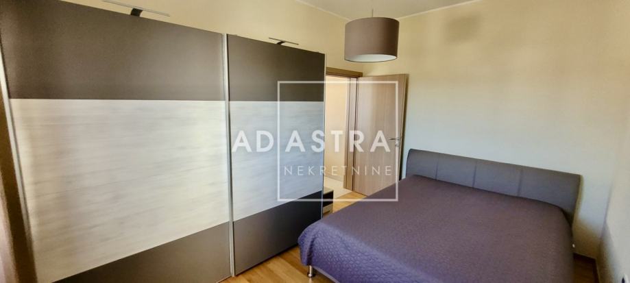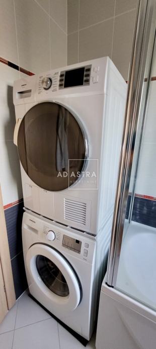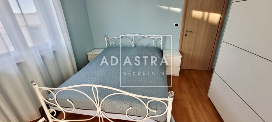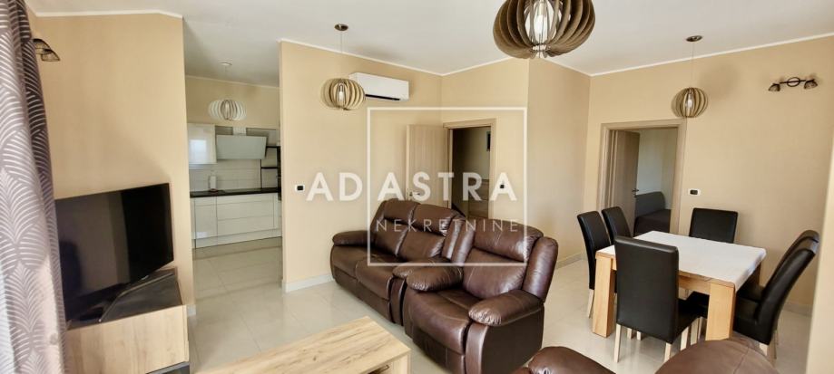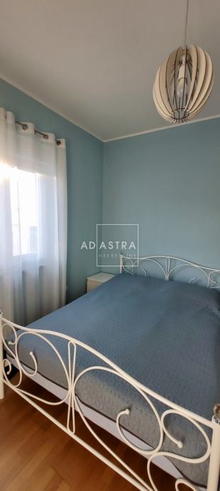 Osim jedne spavaće sobe koja je trenutno u funkciji spremišta, stan je u potpunosti namješten i kao takav se i prodaje. Opremljen je kvalitetnom PVC stolarijom s roletnama i komarnicima, protuprovalnim vratima te dvije klimatske jedinice koje se koriste za grijanje i hlađenje prostora.