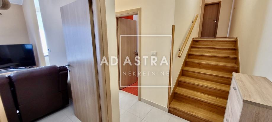 Stepeništem se dolazi na drugu razinu stana na kojoj se smjestilo spremište, kupatilo s kadom te perilicom i sušilicom rublja, i dvije spavaće sobe od kojih jedna ima izlaz na drugu natkrivenu terasu.