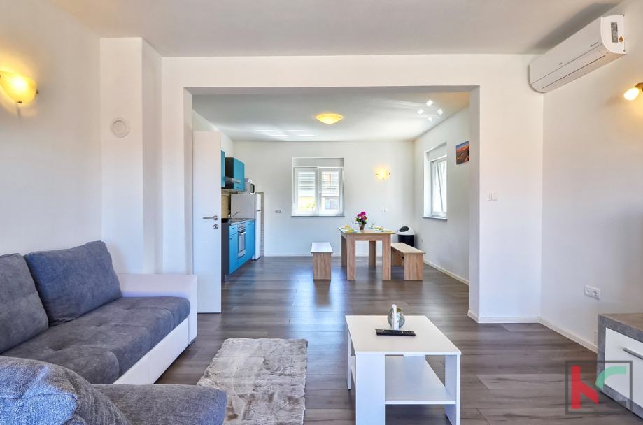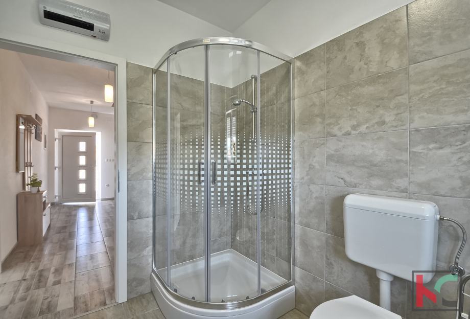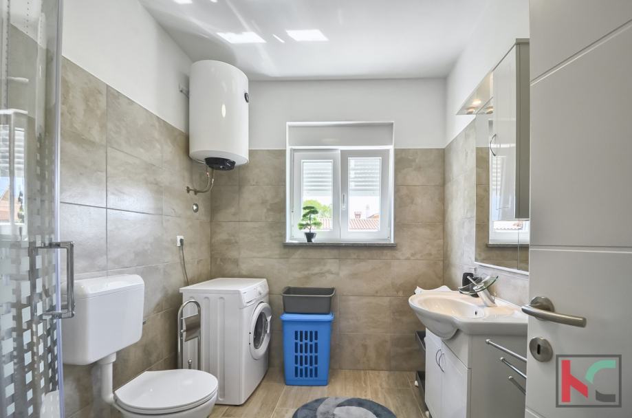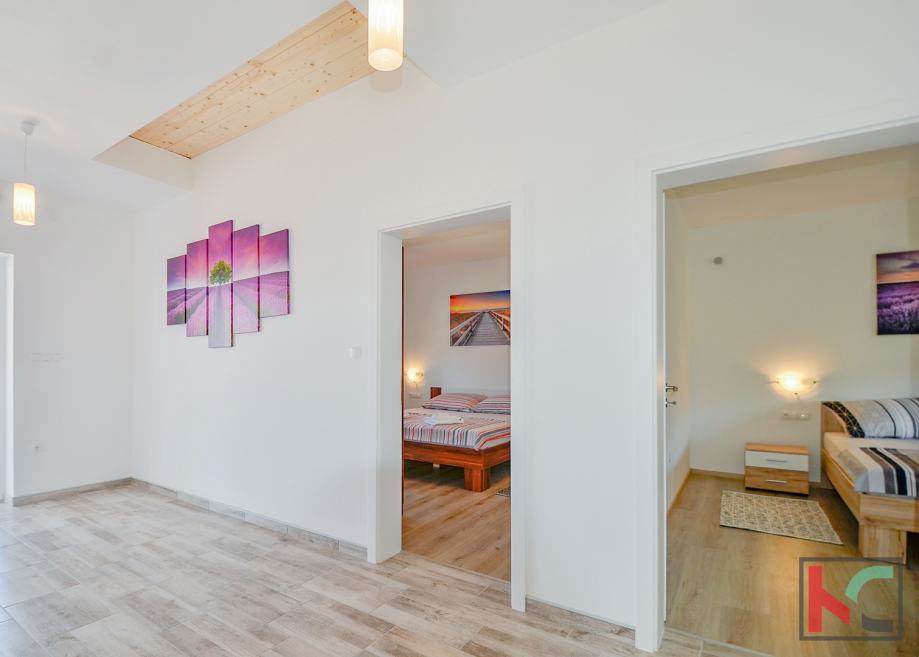 Dva parkirna mjesta i mirna lokacija udaljena samo 1,5 km od mora te blizu svih potrebnih sadržaja. a mansardi su još dvije sobe i WC. pogled na more i