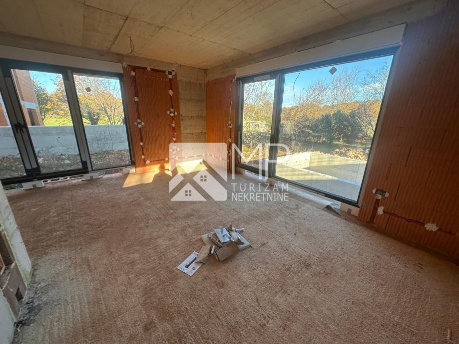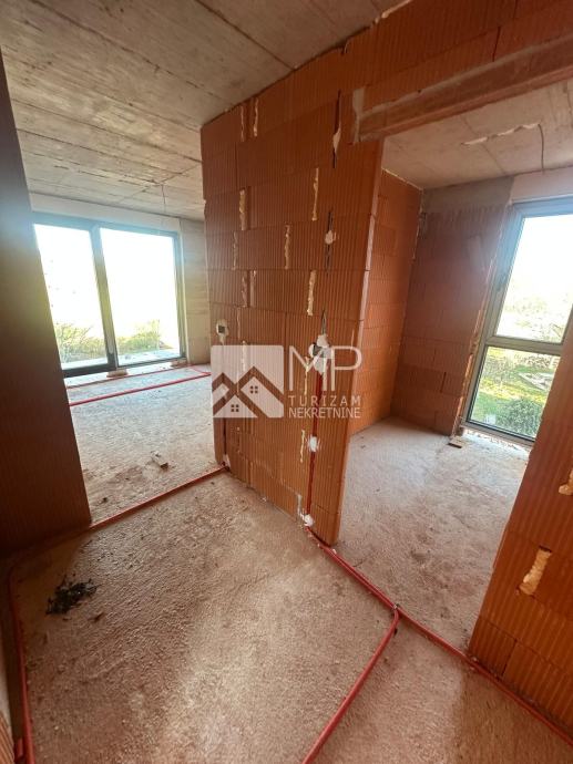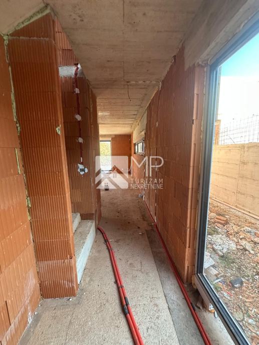 VALTURA, manje naselje u sastavu općine Ližnjan, udaljeno 6 km od Pule. Na mirnoj lokaciji, udaljeno od gužve i gradske vreve, prodajemo obiteljsku kuću oznake „C“ smještenu na parceli od 500m2. Riječ je o samostojećoj kući koja se prostire na dvije etaže – prizemlje i kat neto površine 165,14 m2 m2. U prizemlju je predviđen hodnik+garderoba, kupaonica, dnevni boravak + kuhinja + blagovaonica, natkrivena terasa i spremište (74,66m2). Na prvom katu je predviđen hodnik + stubište, tri spavaće sobe sa kupaonicama, od kojih jedna ima dodatno garderobu, a sve imaju direktan izlaz na natkrivenu terasu (90,48m2). Ispred kuće je predviđeno jedno parkirno mjesto. Osim mirne lokacije, zemljište se nalazi na rubu građevinske zone te se ispred ne može ništa graditi. Oglašena cijena od 290.000 € odnosi se na kuću u trenutnoj fazi – završen roh bau, ugrađena stolarija, napravljene pregrade i izbetoniran bazen. Moguć je dogovor oko završetka kuće.