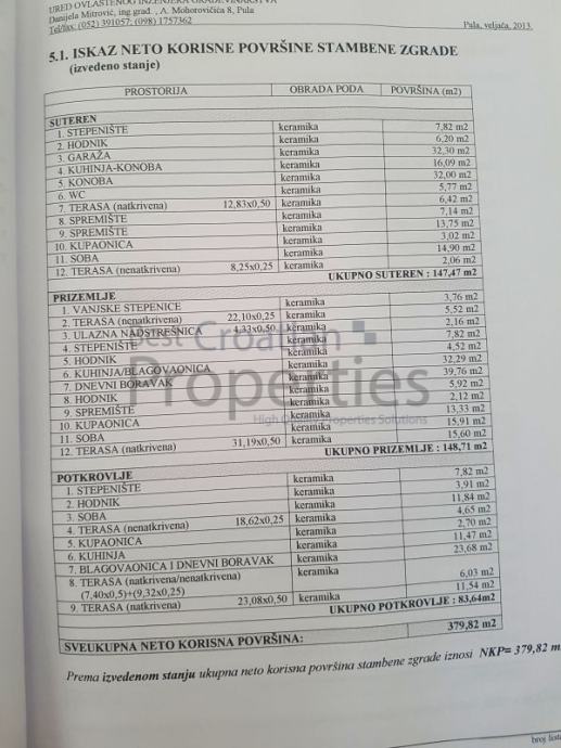 Ova luksuzna villa od netto 380 m2 sagrađena je 2012. godine na zemljištu od 1.486 m2. Na zemljištu se nalazi i manja kuća s tri odvojena studio apartmana sveukupne površine 80 m2.
