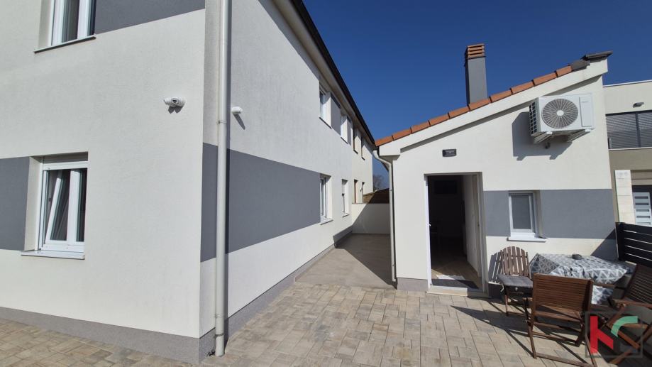 Ova kuća sastoji se od dva odvojena stana, a svaki stan sastoji se od ulaznog hodnika, dnevnog boravka sa kuhinjom i blagovaonom, 3 spavaće sobe, 2 kupatila, ostave i prostorije za tehniku. U dvorištu kuću nalazi se manji odvojeni objekt koji je uređen u manji studio sa kupatilom, a može poslužiti i kao konoba za druženje ili ostava. Grijanje je riješeno modernom dizalicom topline i podnim grijanjem, dok su za dodatnu udobnost tijekom ljetnih mjeseci instalirani klima uređaji. Kuća je opremljena i video nadzorom.