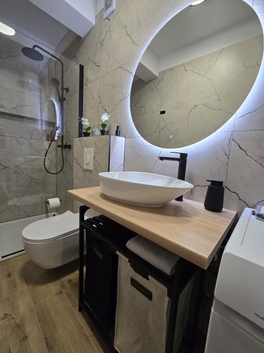 Od opreme izdvajamo: Bespaltni brzi internet, Ful HD Smart Google TV, Klima uređaj, grijanje, perilica posuđa, perilica i sušilica rublja.
