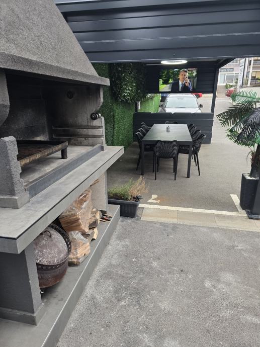Kuhinja vrhunske kvalitete sa svom opremom i ugradbenim aparatima, dvorišna terasa opremljena sa velikim roštiljem/peka, stol sa deset stolica.