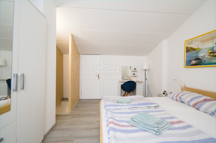 Na pješačkoj udaljenosti od plaže u poznatom turističkom mjestu kraj Poreča smjestio se ovaj renovirani stan sa manjim balkonom savršen za ljetni boravak ili kao vikend smještaj tokom cijele godine.