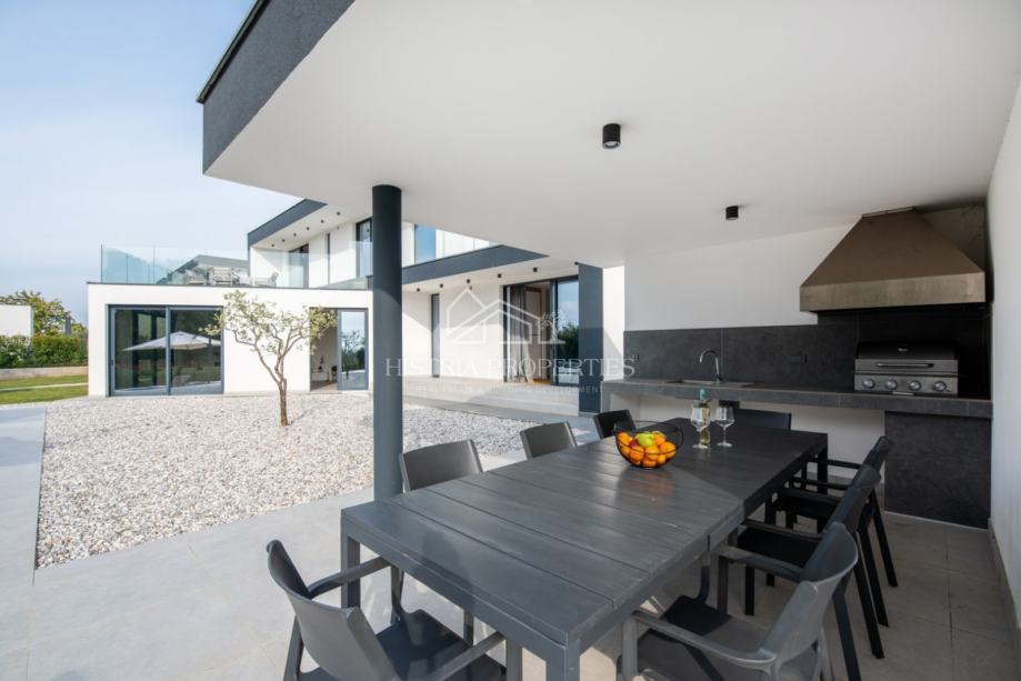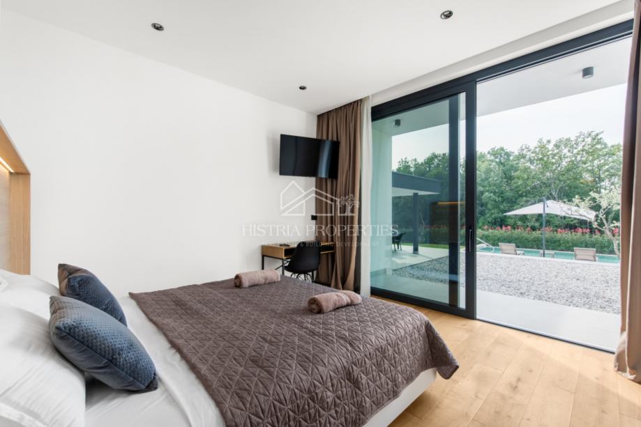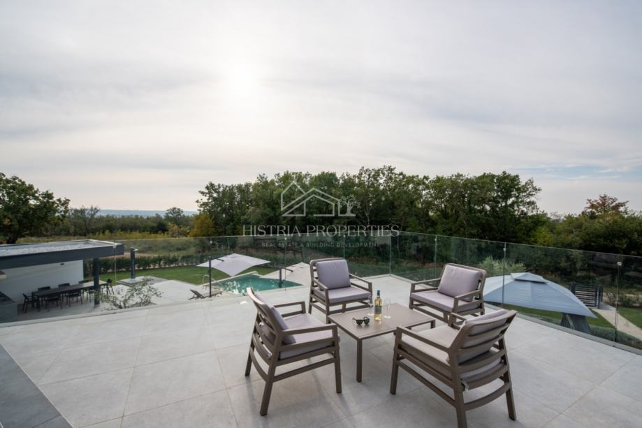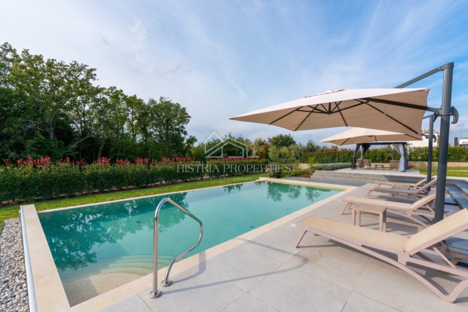 Prodaje se pravom riječi luksuzna i moderna vila sa bazenom i lijepim pogledom te dizajnerski opremljena na mirnoj lokaciji u okolici Poreča.